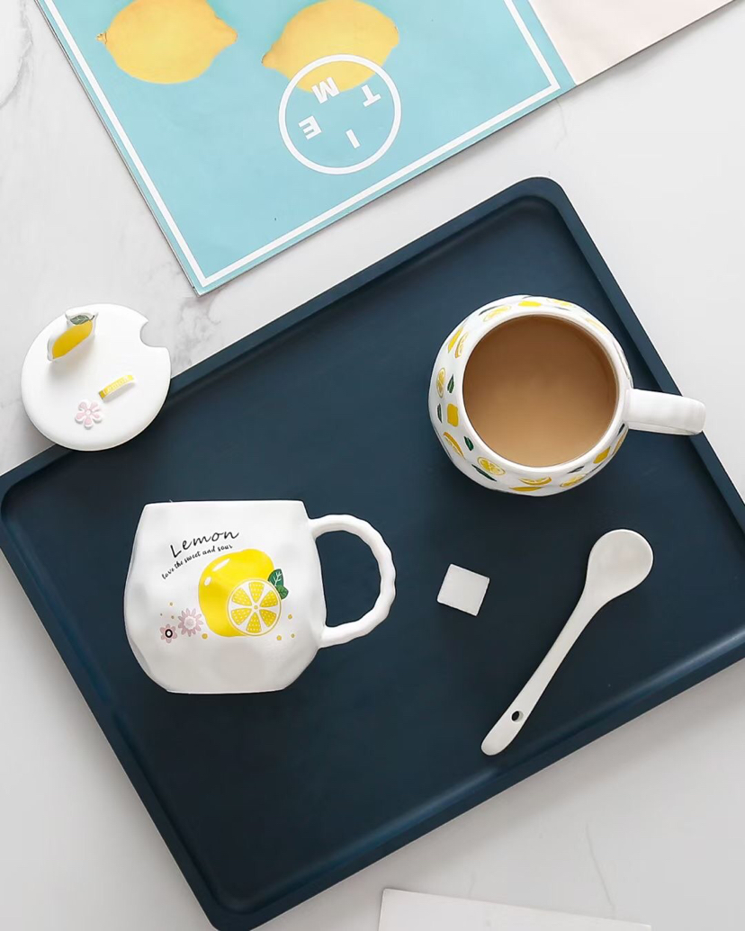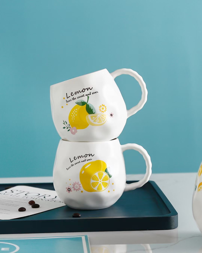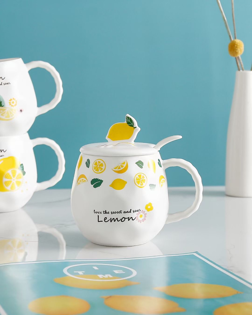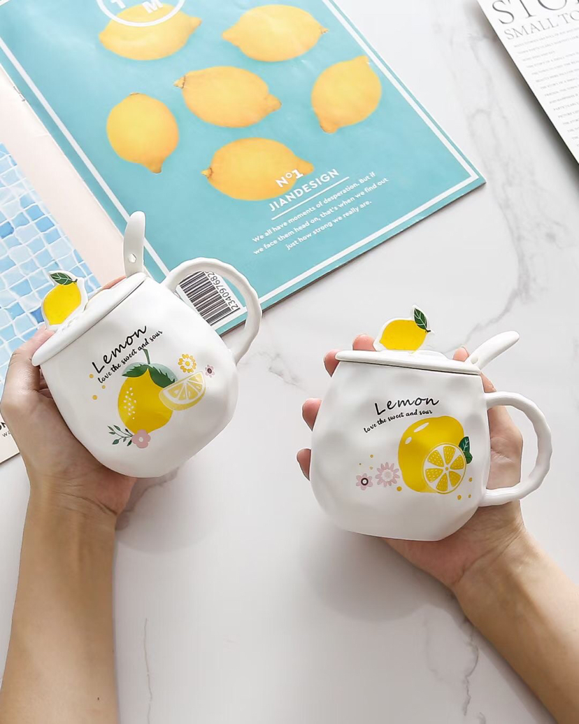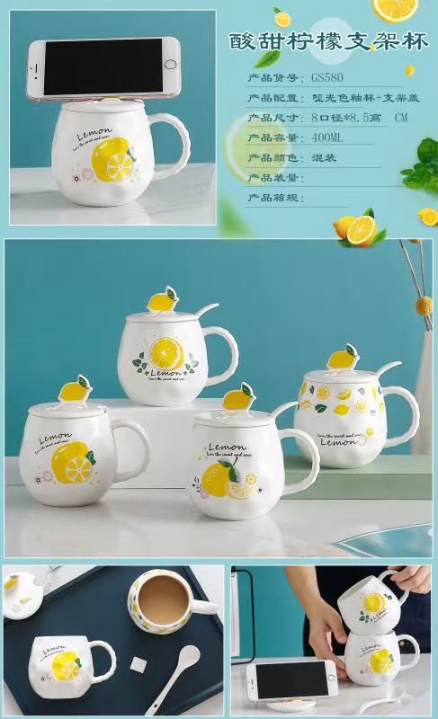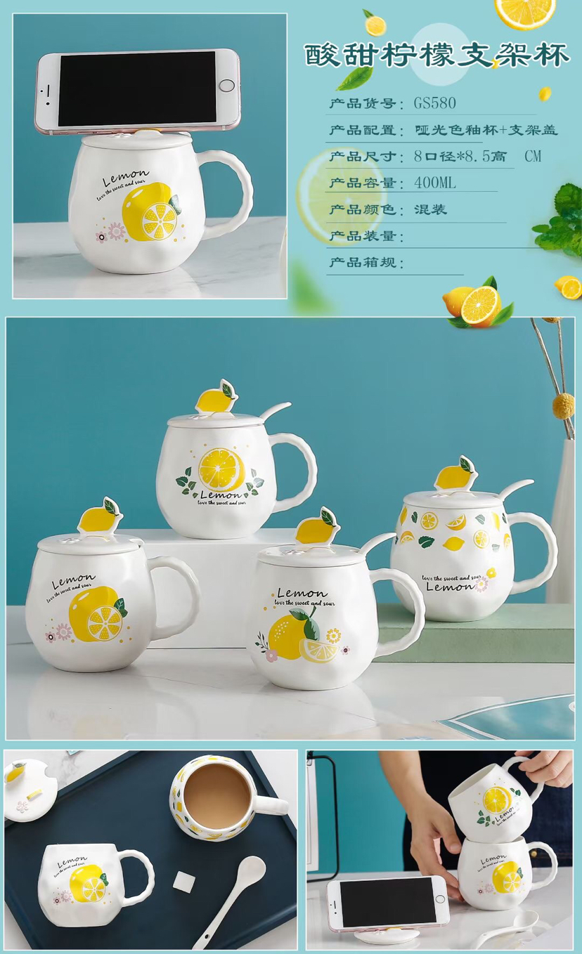 创意小清新水果陶瓷杯带盖带勺马克杯柠檬手机支架水杯 投诉