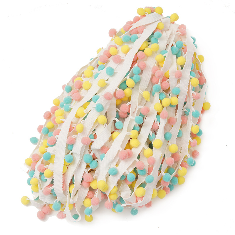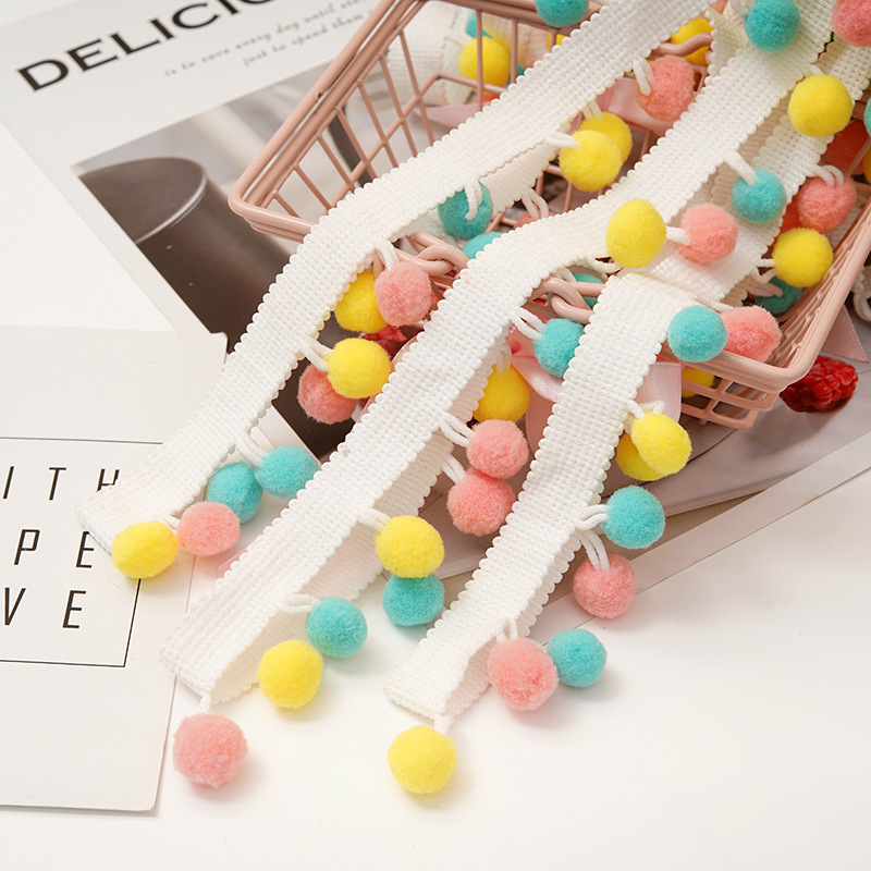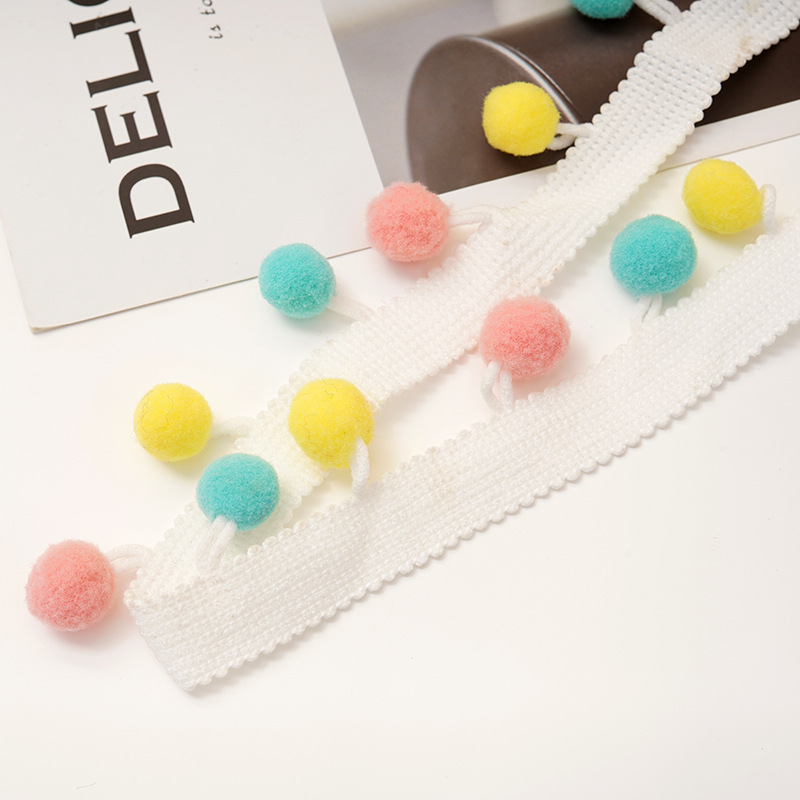 厂家现货宽边彩色花边 1.5cm抱枕毛球花边 包包帽子辅料配饰批发 English | 投诉