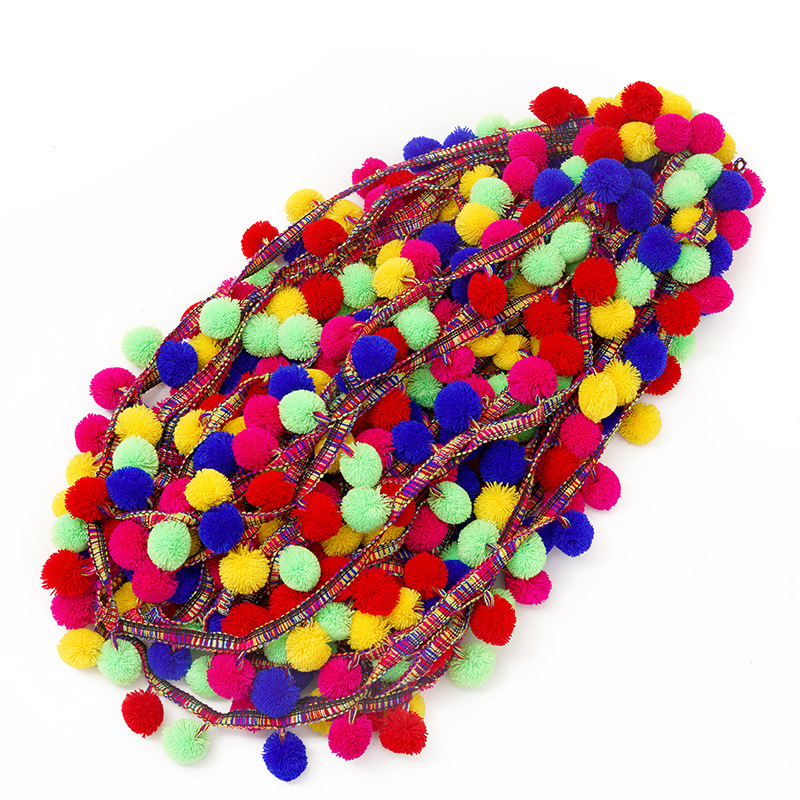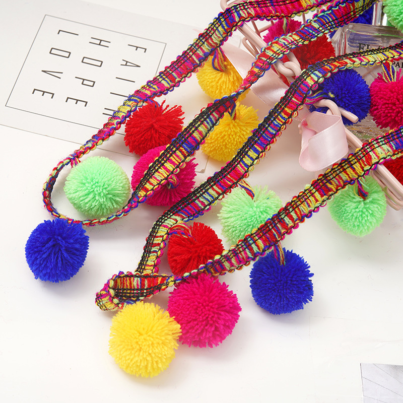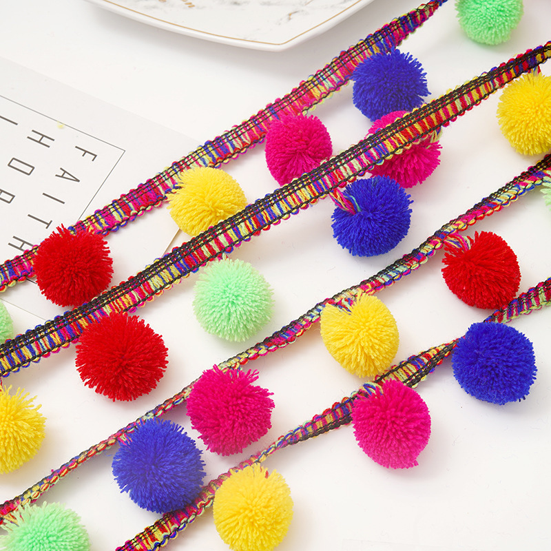 厂家直供开司米彩色花边 3cm弹力毛球帽子配饰 抱枕包包辅料批发 English | 投诉