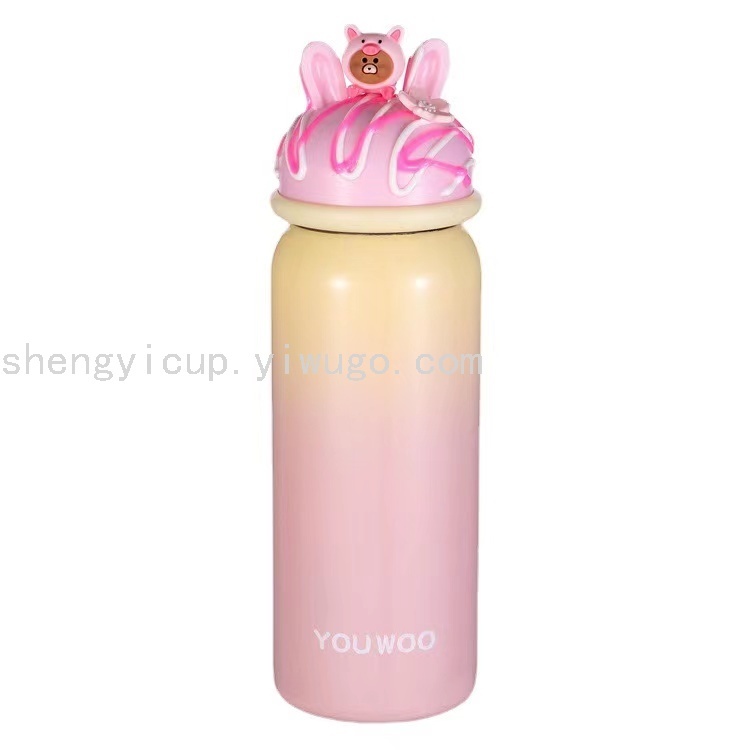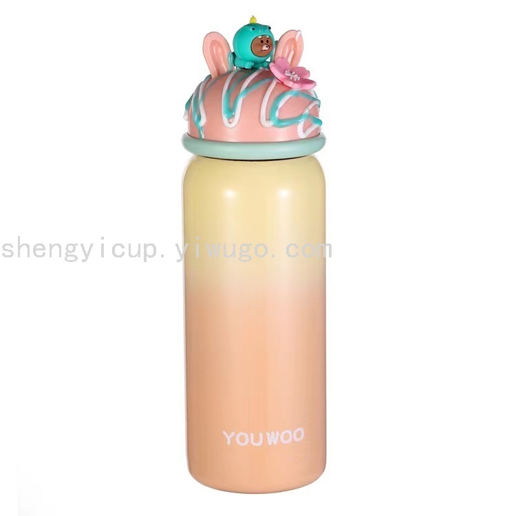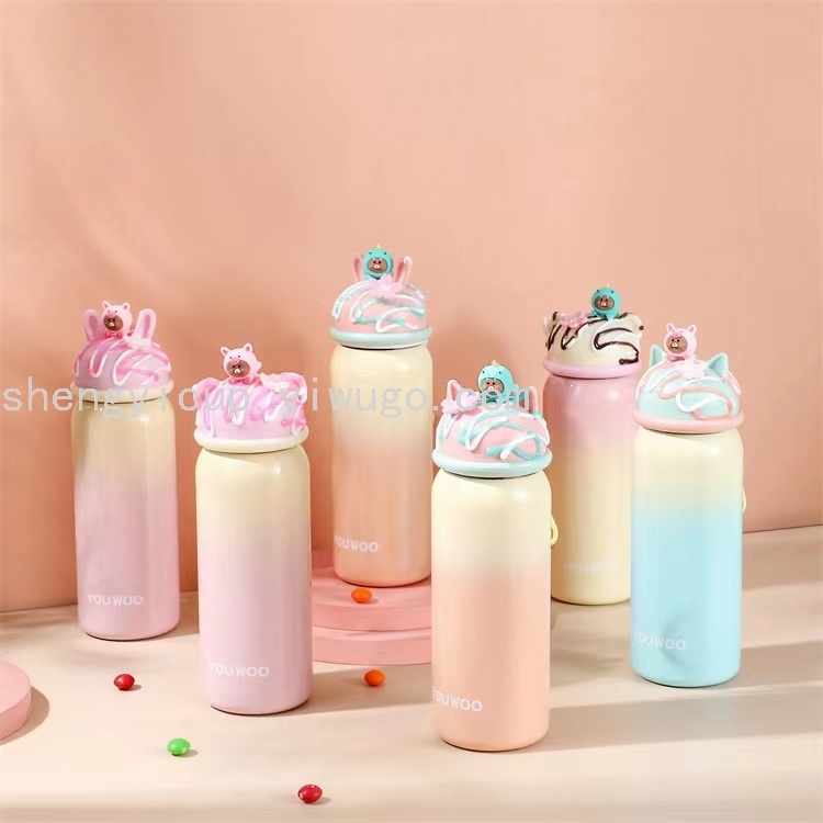 尤物良品可爱清新卡通真空不锈钢马卡龙色渐变杯子蛋糕保温杯礼