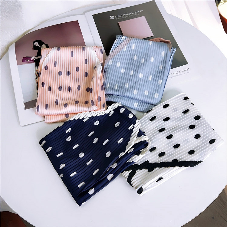 波点豹纹百褶韩版方巾春秋文艺复古小丝巾新款装饰小领巾女 English | 投诉