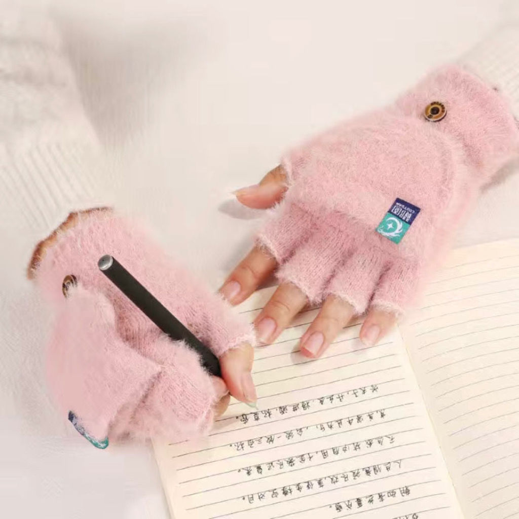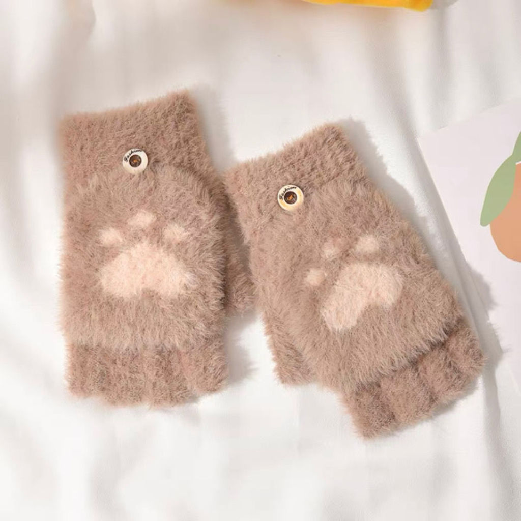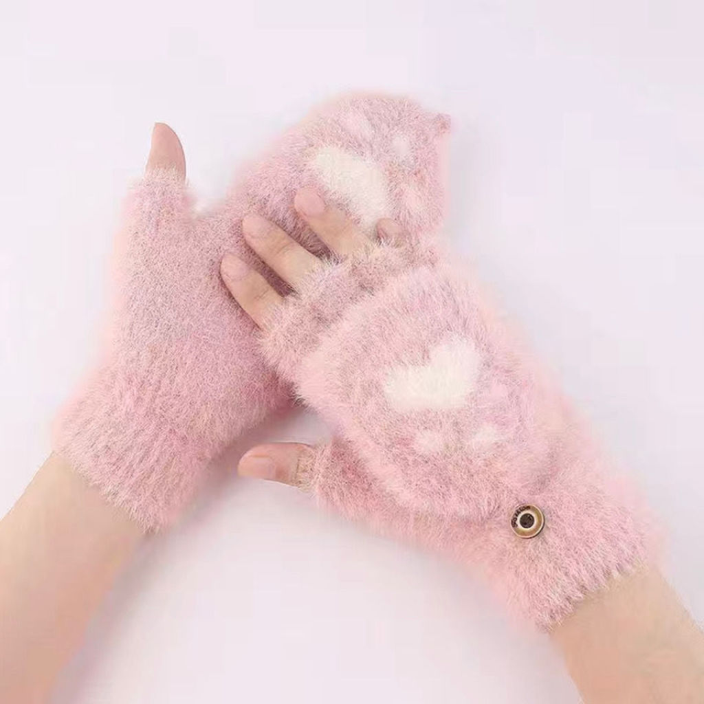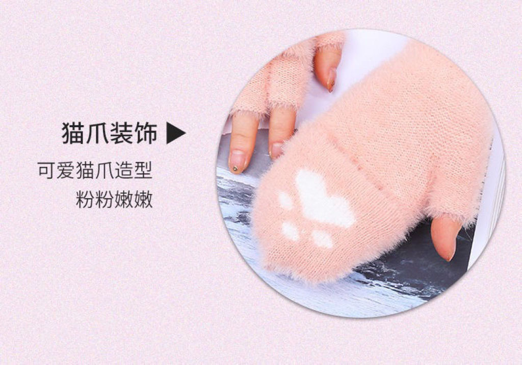 冬季女款熊掌翻盖露指触屏手套 English | 投诉
