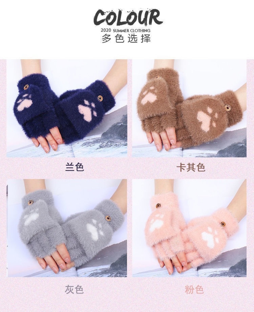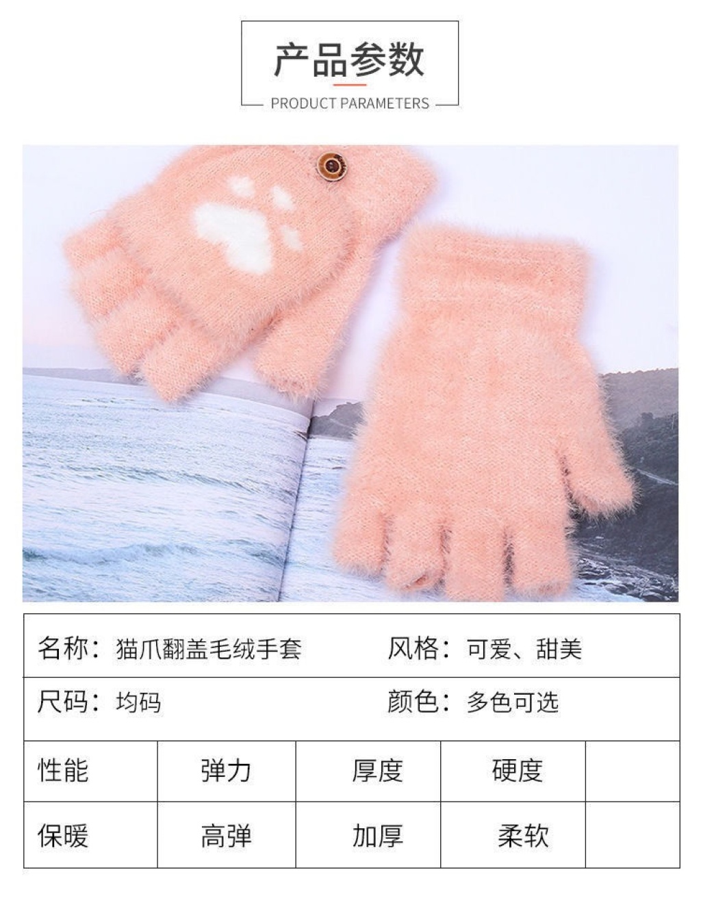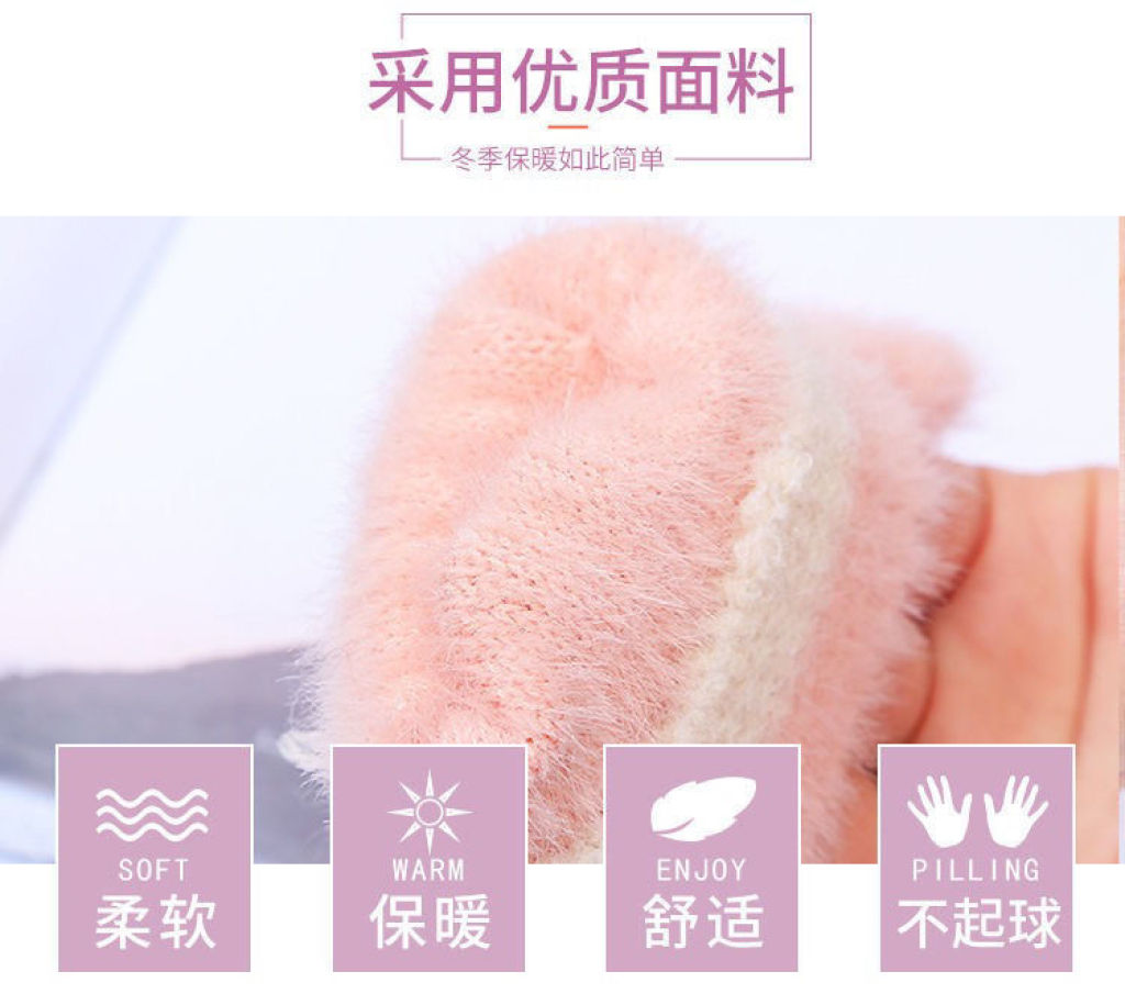 冬季女款熊掌翻盖露指触屏手套 English | 投诉