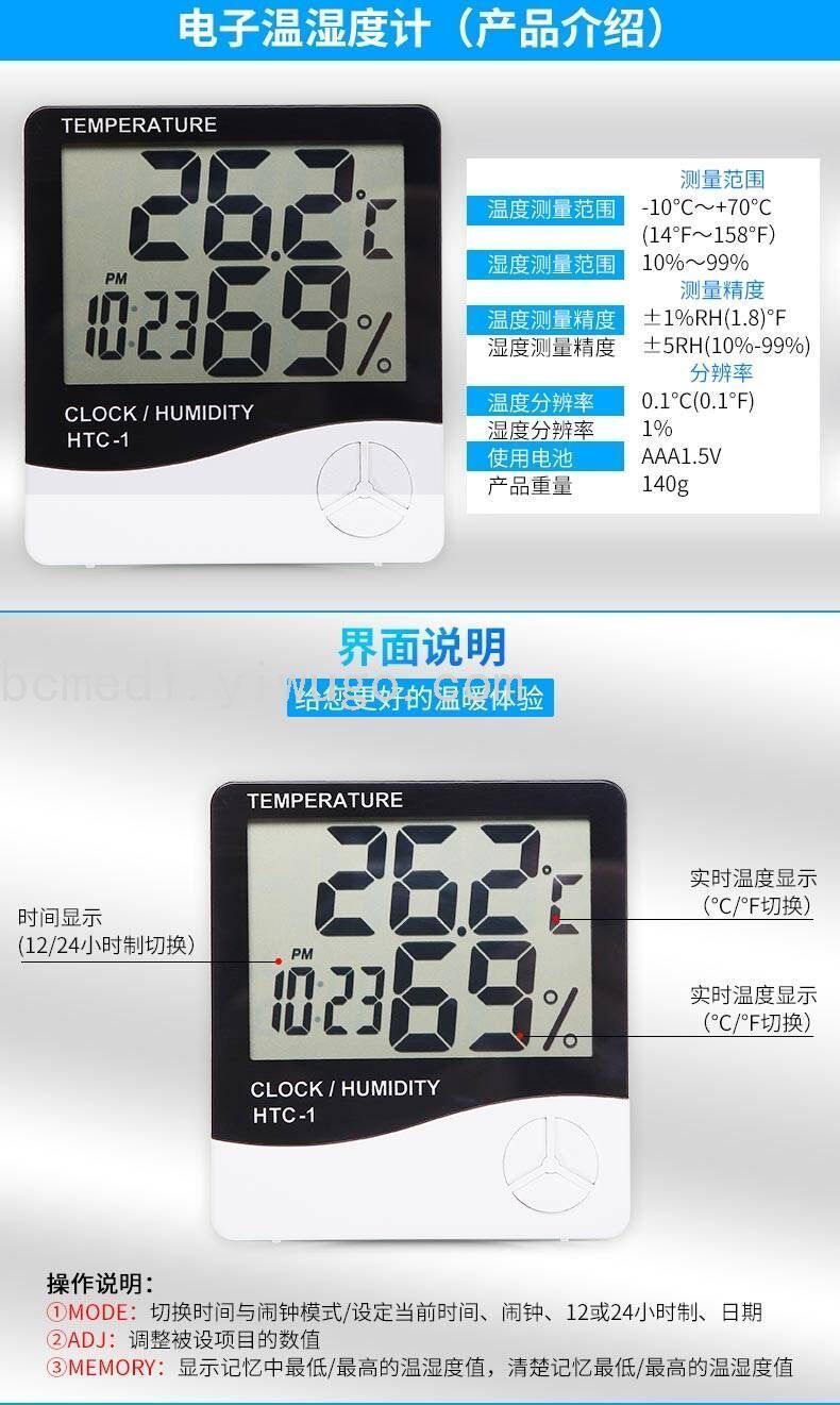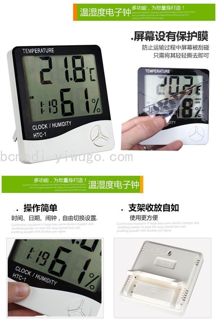 大屏幕家用温度计温湿度计 室内婴儿房电子温度计带电子闹钟 投诉