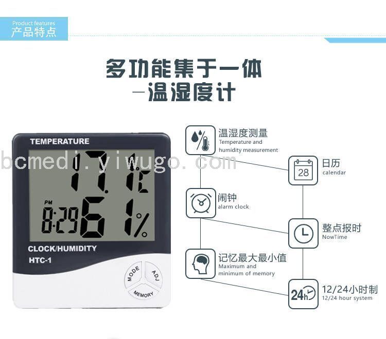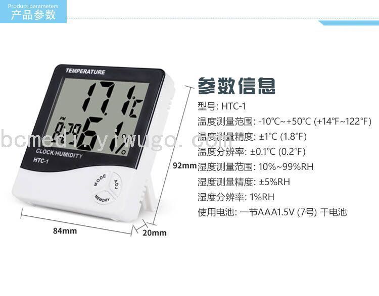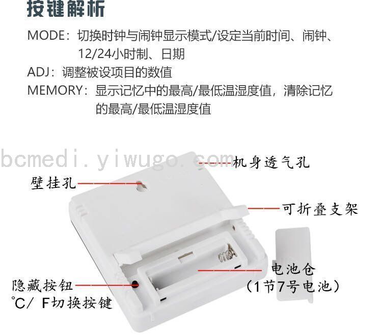 大屏幕家用温度计温湿度计 室内婴儿房电子温度计带电子闹钟