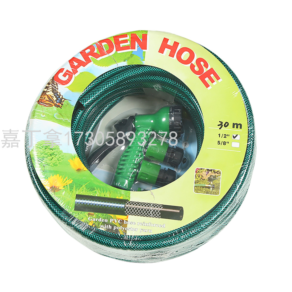 1/2寸绿色花园灌溉水管带4PCS水枪接头套装 园林浇水水管 20M