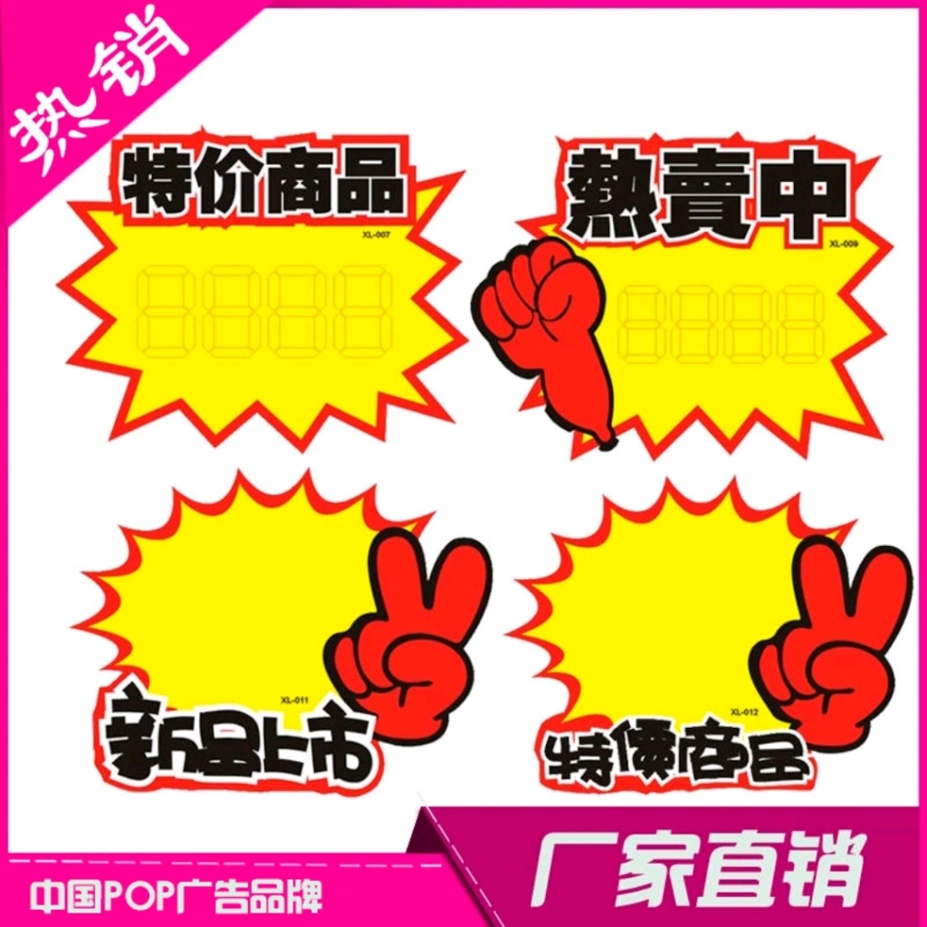 【厂家直销】爆炸贴pop促销纸价格牌标签纸惊爆价超市水果价格牌 投诉