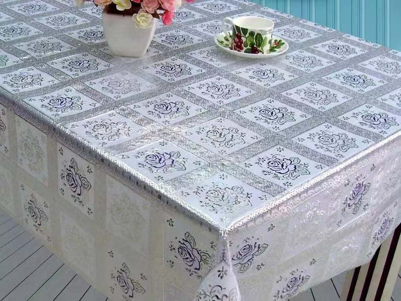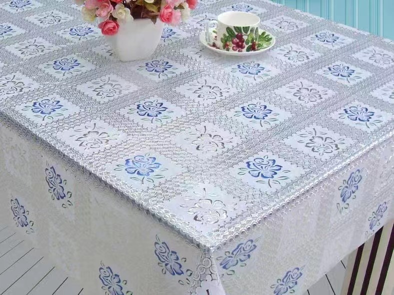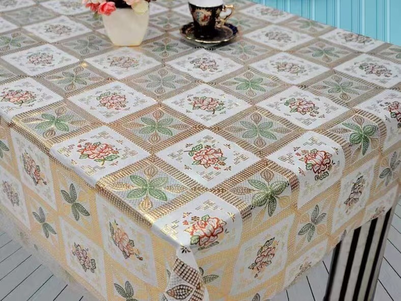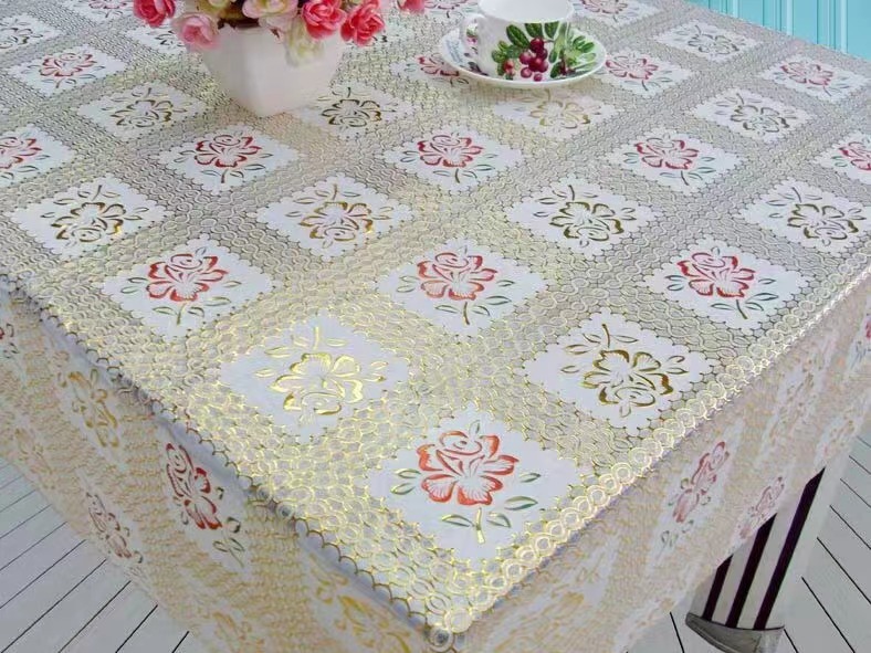 新款PVC蕾丝台布彩金台布环保无毒无味防水防油PVC桌布