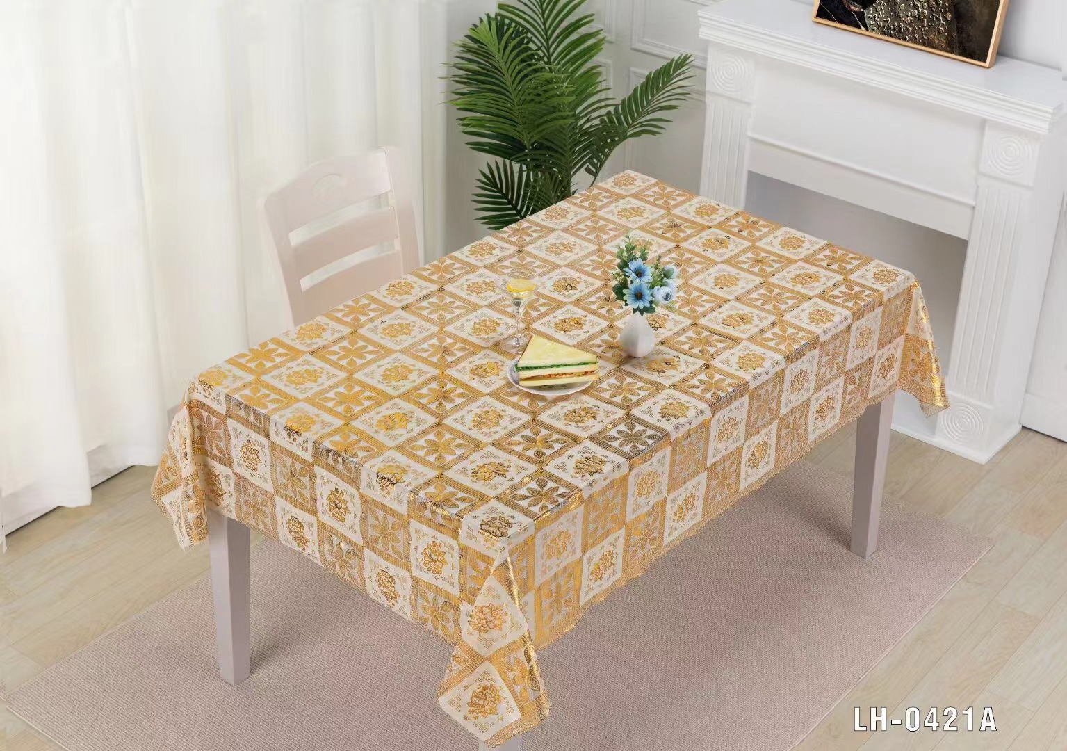 PVC蕾丝印花桌布PVC烫金烫银台布137CM*20M环保无味现货供应 投诉