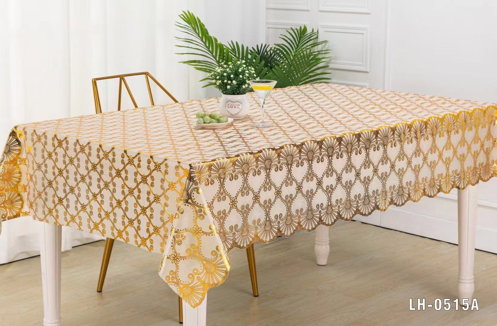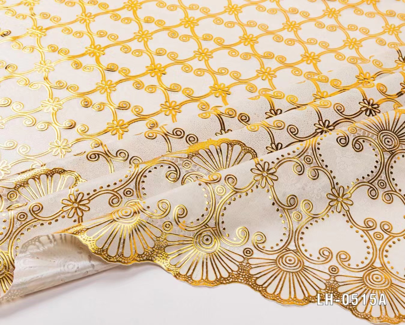 PVC蕾丝印花桌布PVC烫金烫银台布137CM*20M环保无味现货供应