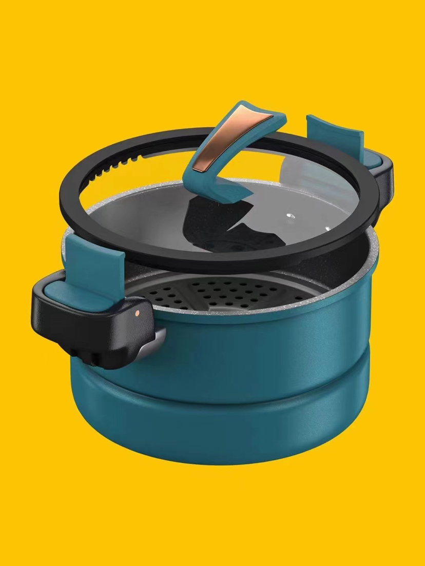 ▷双层蒸炖结构(爱乐扣)锁压美食料理、轻松锁压、全新垂直锁压设计、多能烹饪适用蒸、焖、涮、煮、炸、煲、火锅.......