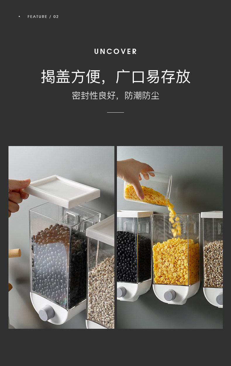 五谷杂粮收纳盒厨房壁挂式谷物储物罐米豆密封罐麦片分配机坚果盒 投诉