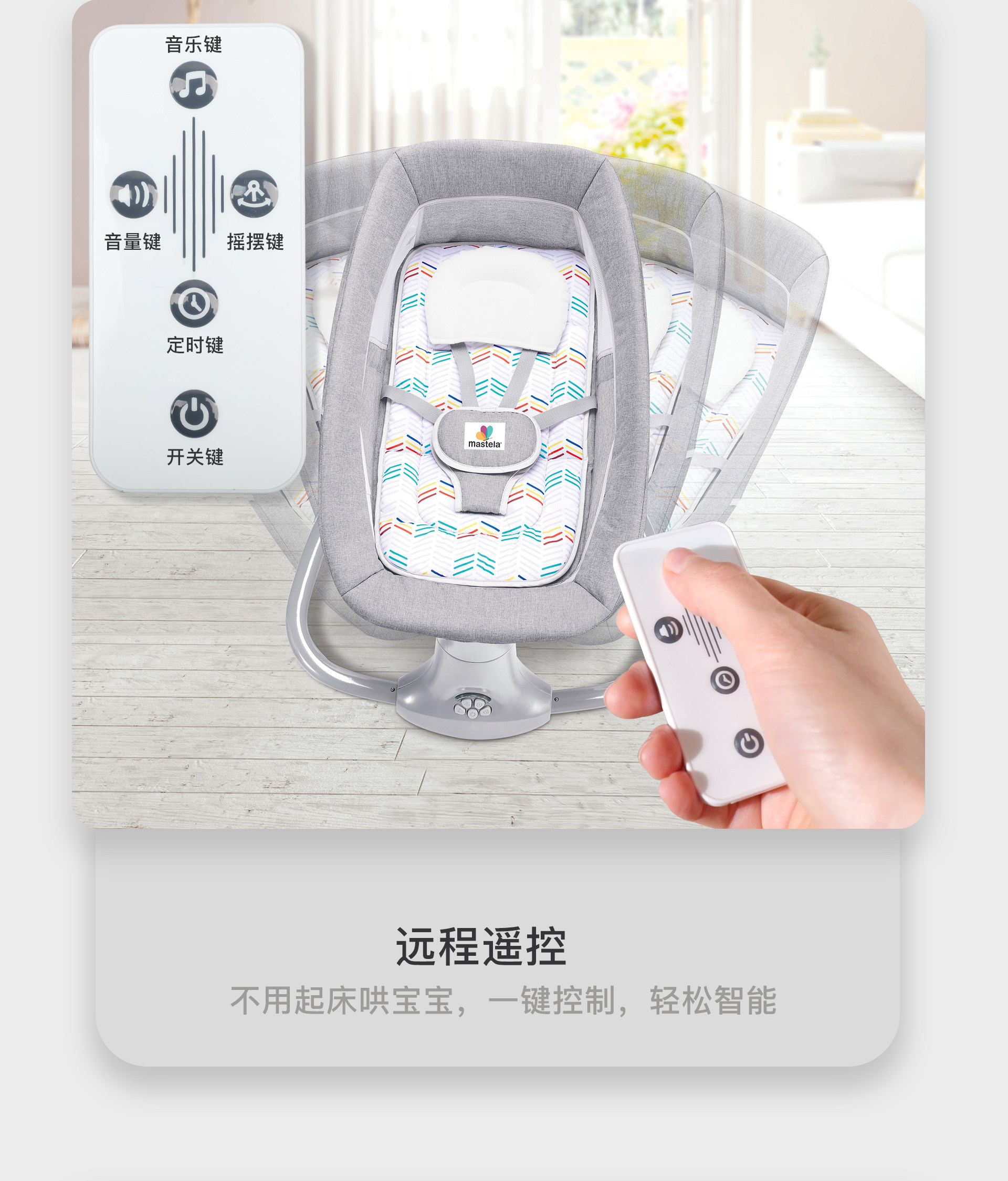 mastela 婴儿电动摇椅摇床安抚椅电动宝宝摇篮椅睡篮智能摇床