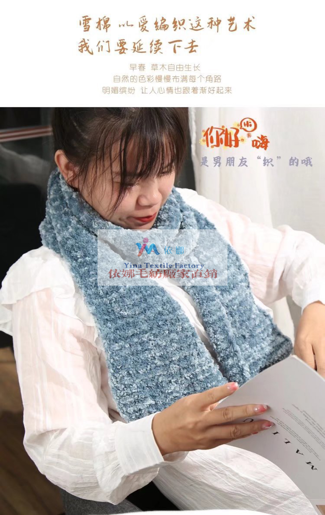 • 义乌恒娜纺织有限公司-依娜纺织毛线生产厂家总店:义乌市国际商贸城四区87号门五街41747店、42102店,可直接联系微信或电话订货:13575976222(微信同号)、13867909835