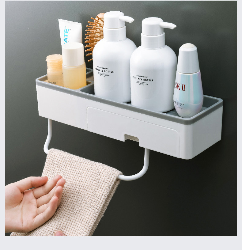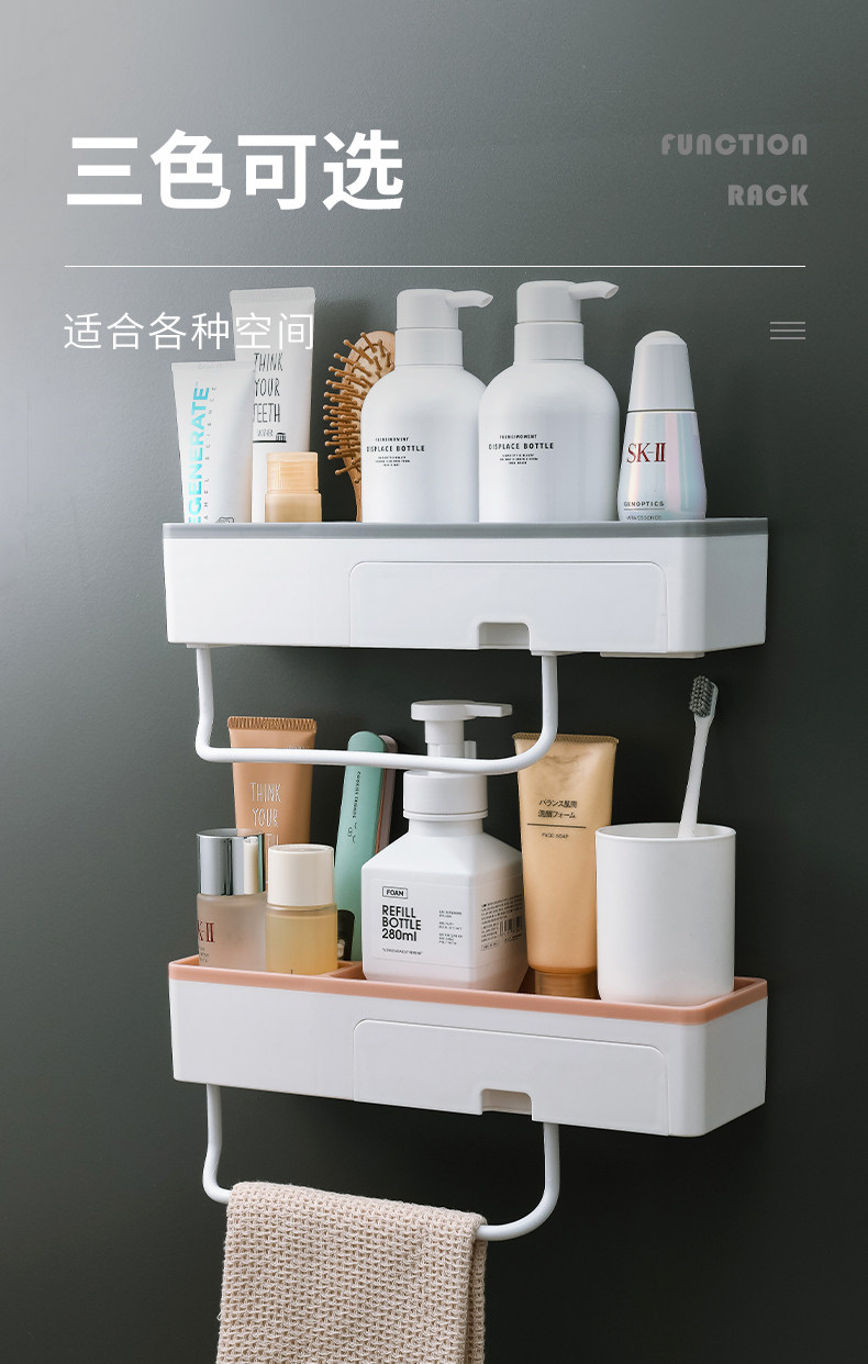 卫生间置物架厕所洗手间洗漱台毛巾收纳免打孔壁挂式洗澡墙上浴室