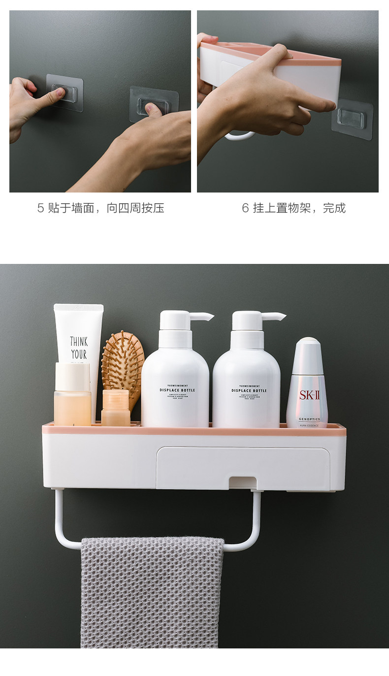 卫生间置物架厕所洗手间洗漱台毛巾收纳免打孔壁挂式洗澡墙上浴室 投诉