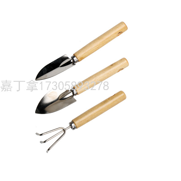 3PCS木柄手柄园林铲/园林耙手动工具 花园植物盆栽工具 绿化工具1