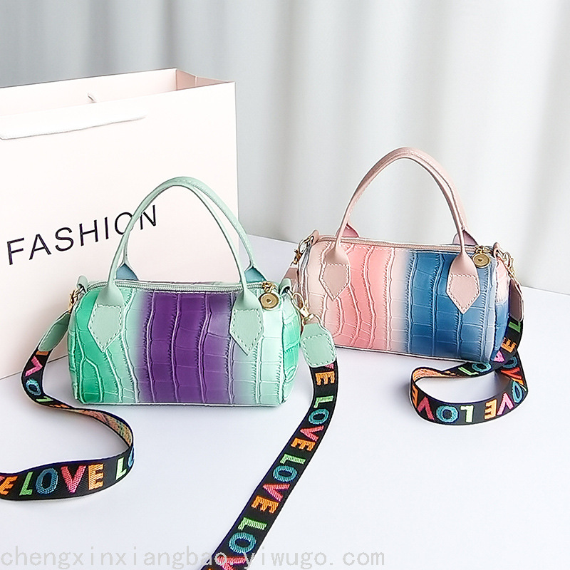 跨境代发包包女bags撞色单肩斜挎枕头包女式小众手拎包潮流女包
