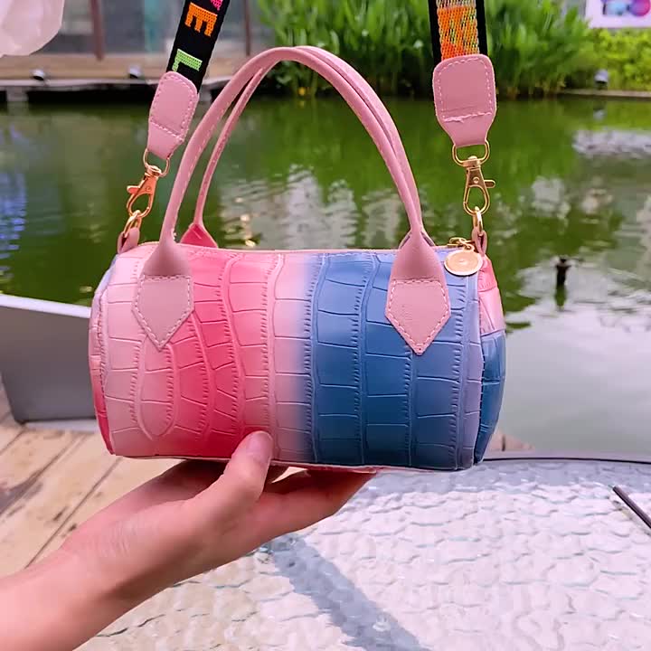 跨境代发包包女bags撞色单肩斜挎枕头包女式小众手拎包潮流女包 English | 投诉