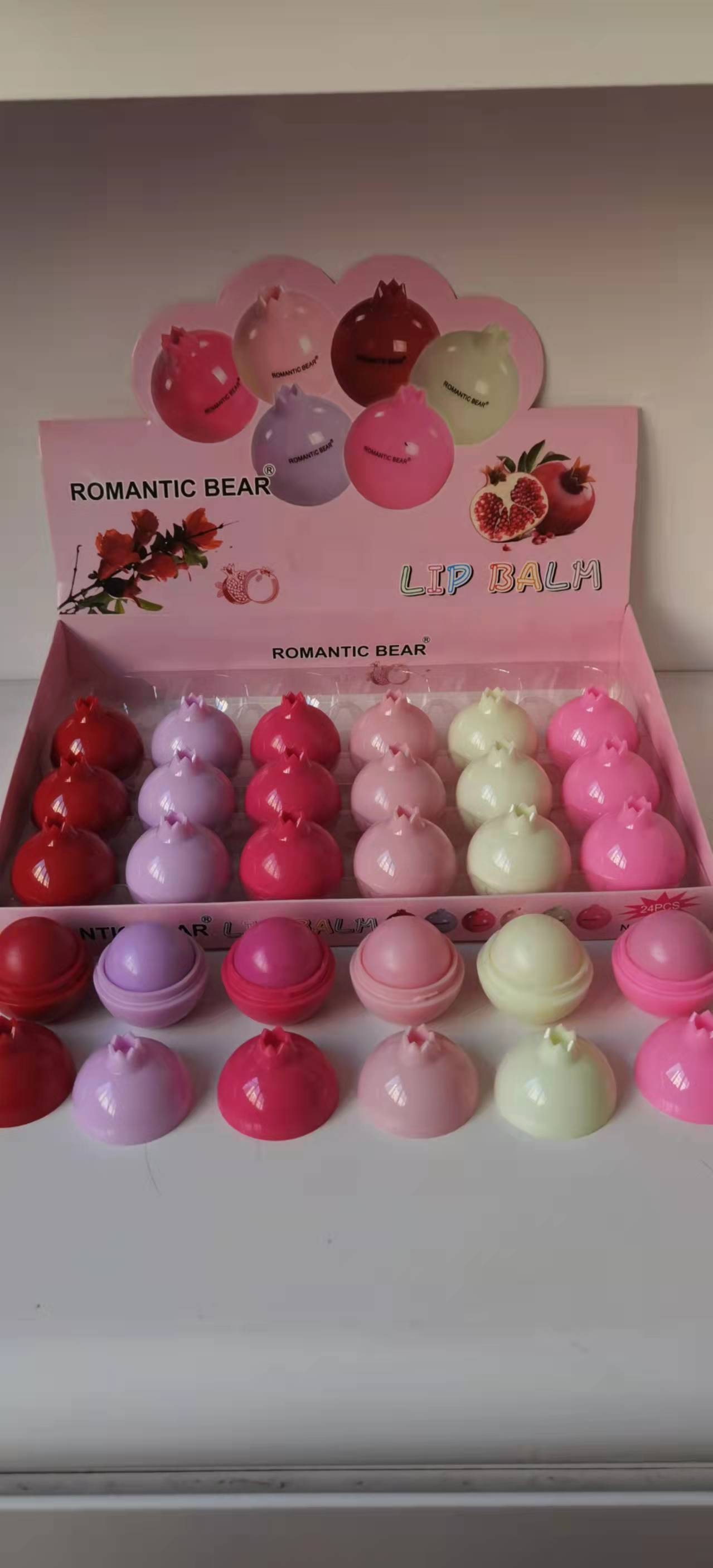 石榴形状唇膏唇彩,6色混装,24支入彩色展示盒,量大可定做,欢迎广大客户前来洽谈选购!