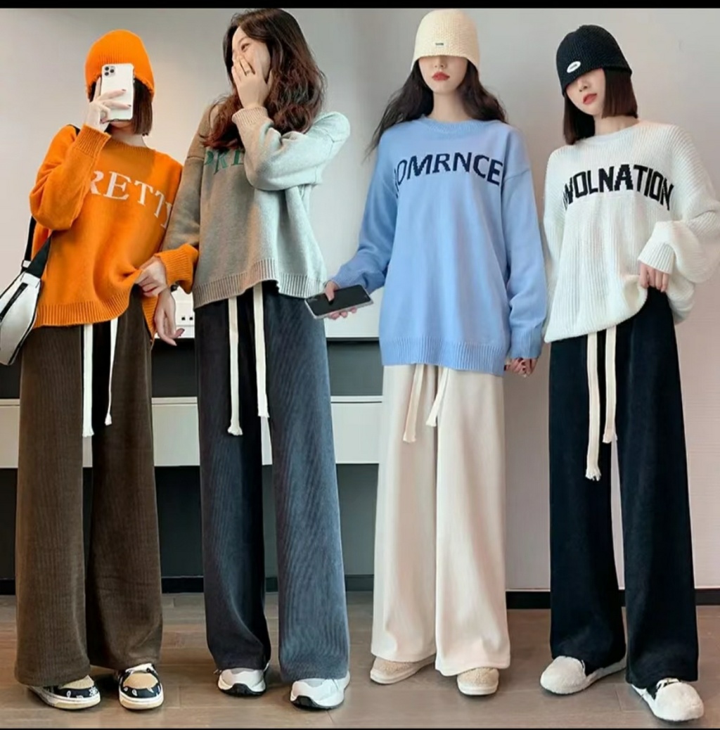 2023春款欧锦绒加厚阔腿裤,时尚女裤,四色均码,打底裤,保暖裤