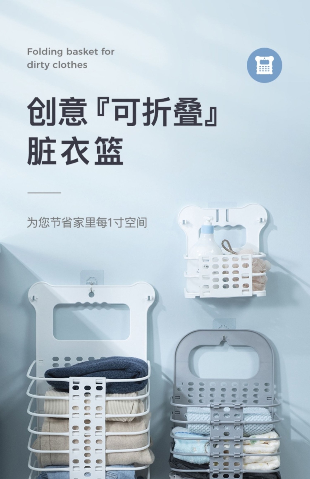 脏衣篮可折叠家用浴室脏衣篓收纳筐子卫生间换洗装衣服桶墙壁挂式 投诉