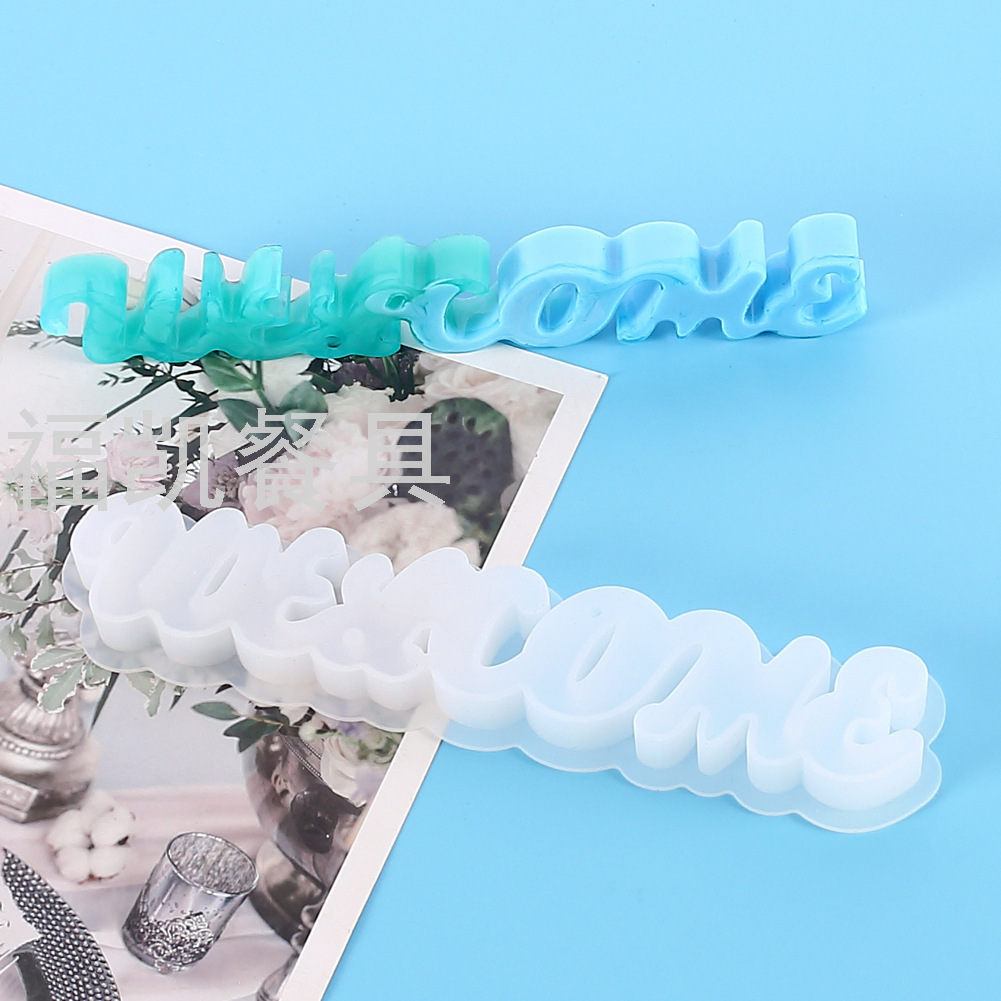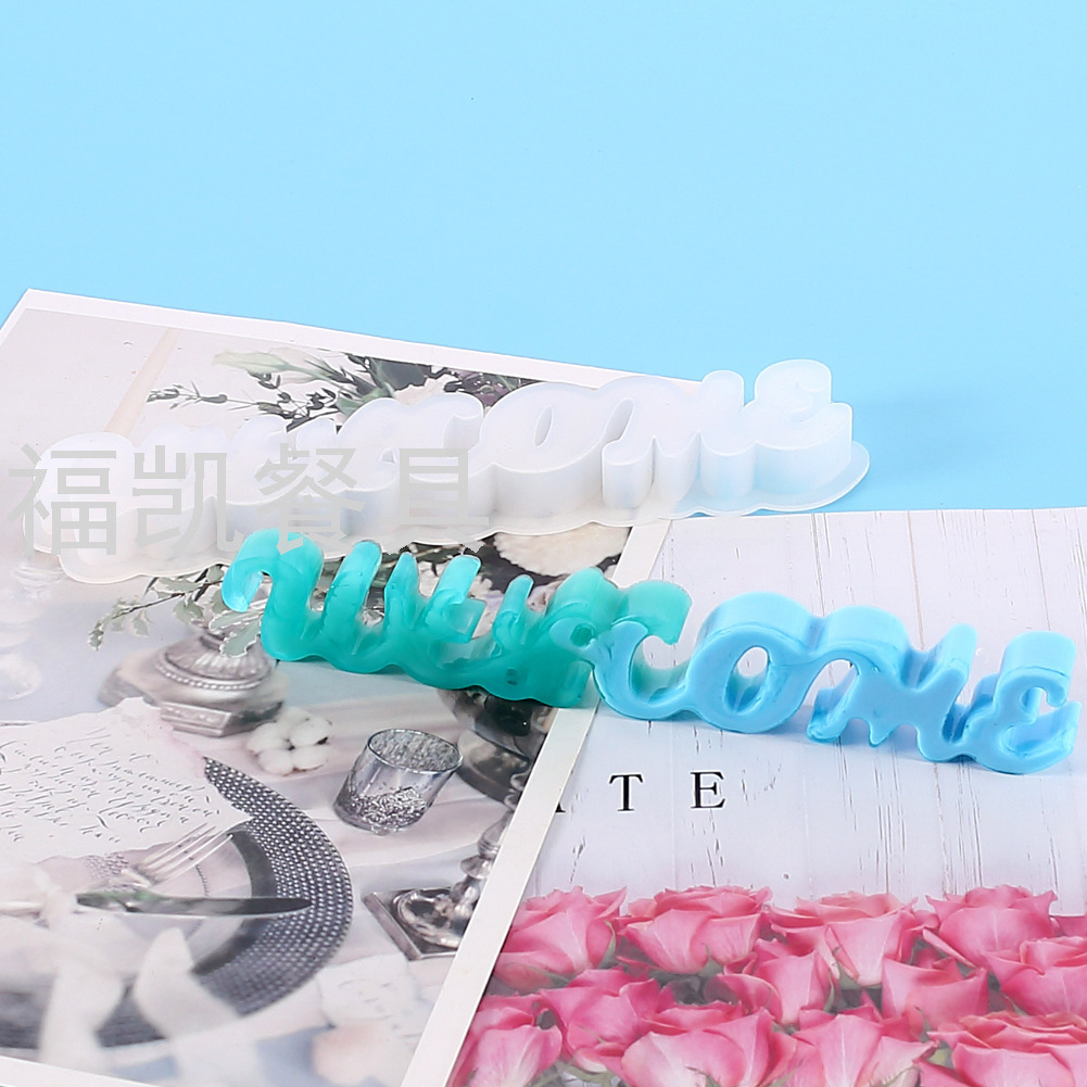 DIY水晶环氧树脂制作欢迎标语挂牌模具蛋糕装饰硅胶模具