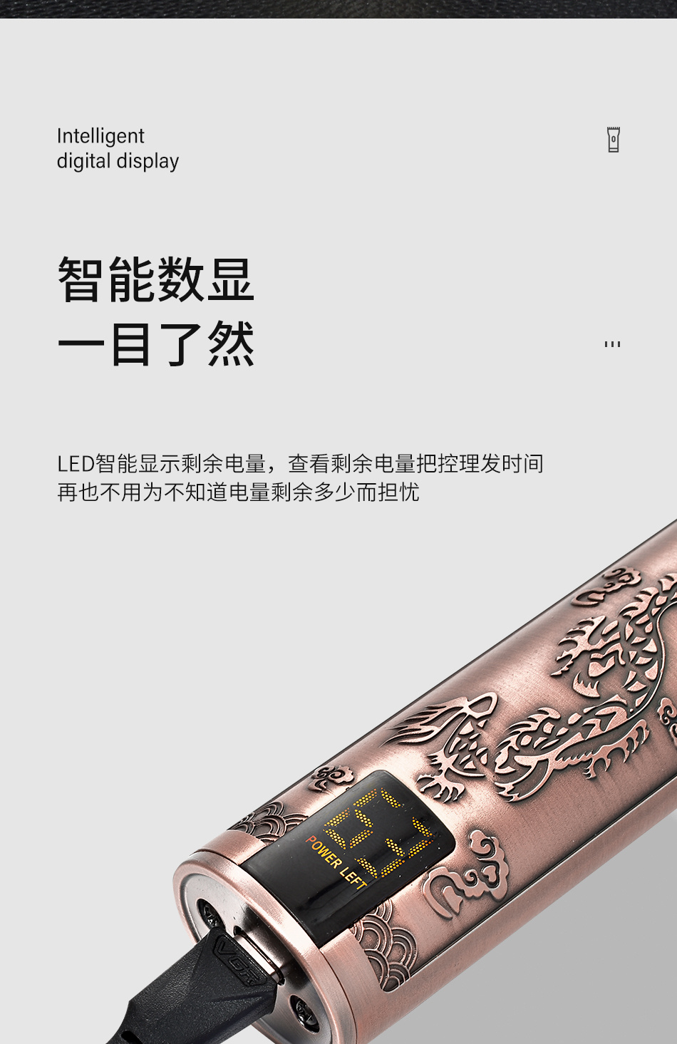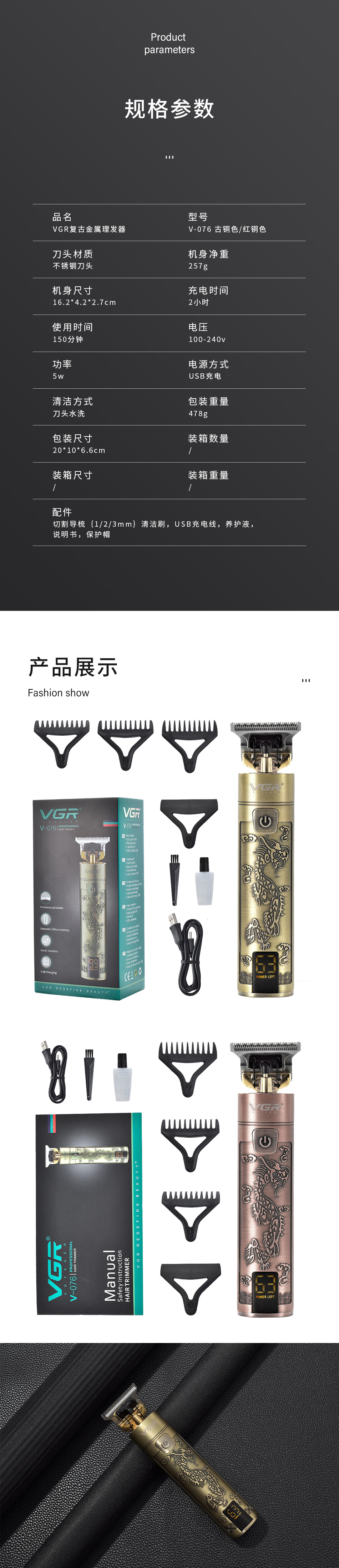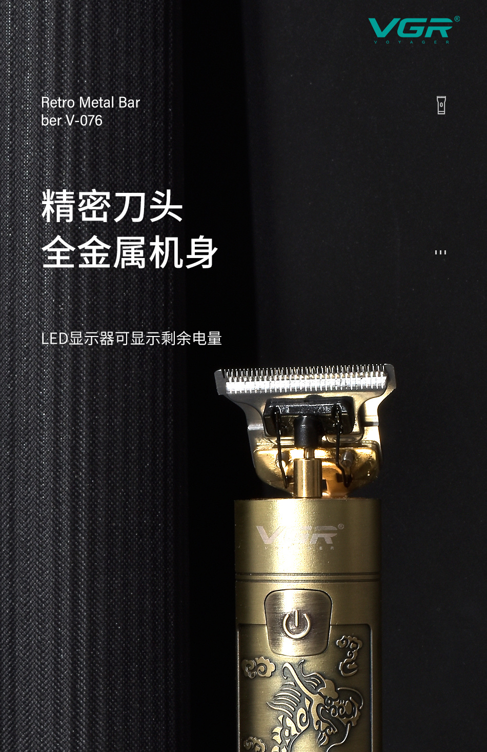 VGR076复古油头金属电推剪 USB充电数显理发器中国风龙凤电推子 投诉