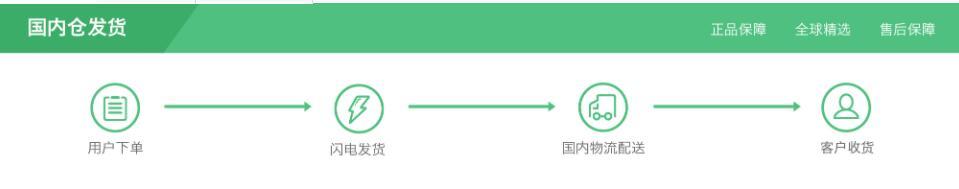 一般贸易商品操作方式:用户下单--->国内仓发货---->国内物流配送---->客户收货。