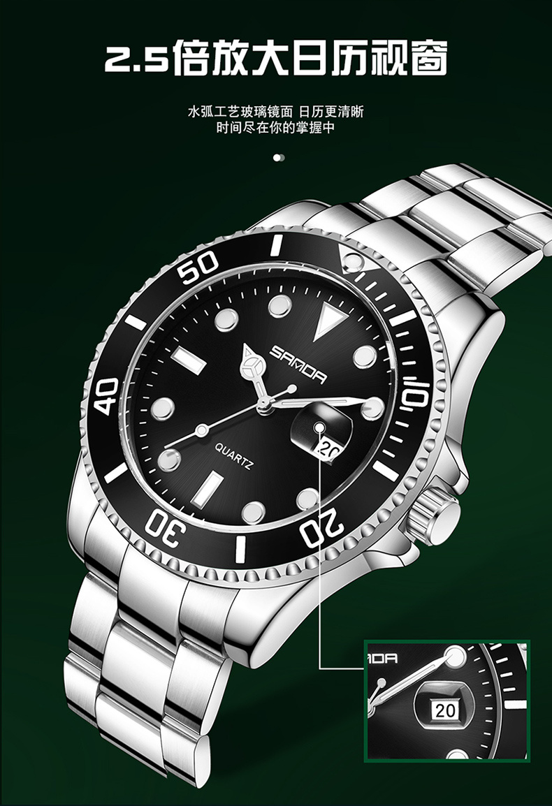 SANDA三达P1099 新款钢带石英机芯简约时尚个性商务夜光指针腕表 投诉