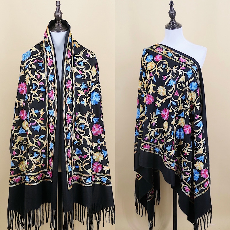 水草花刺绣仿羊绒围巾加厚保暖披肩新疆西藏旅游披肩厂家直销 English | 投诉