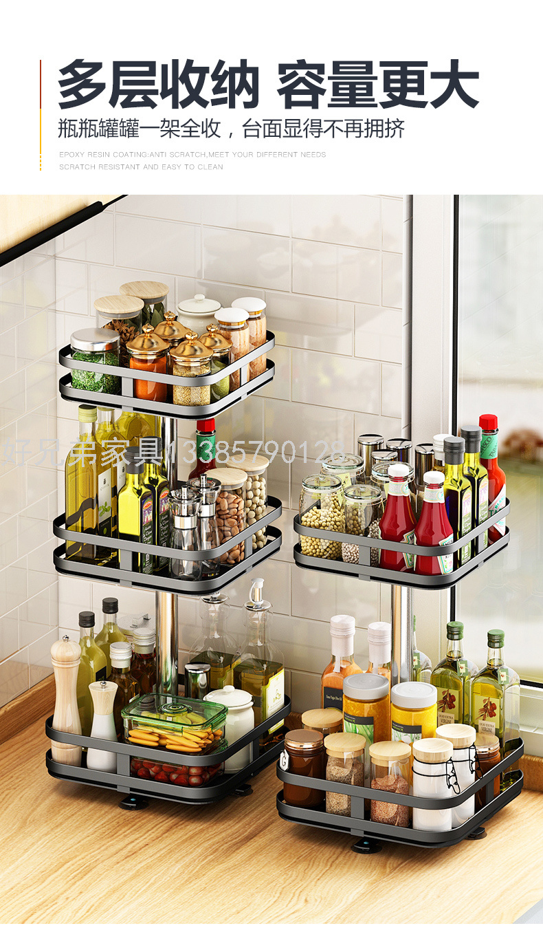 可旋转厨房调料置物架台面转角放调味品油盐酱醋瓶多功能圆形收纳 投诉