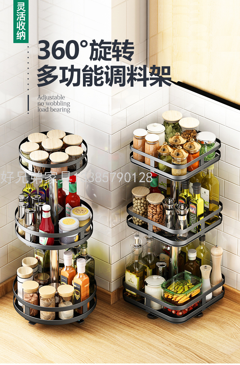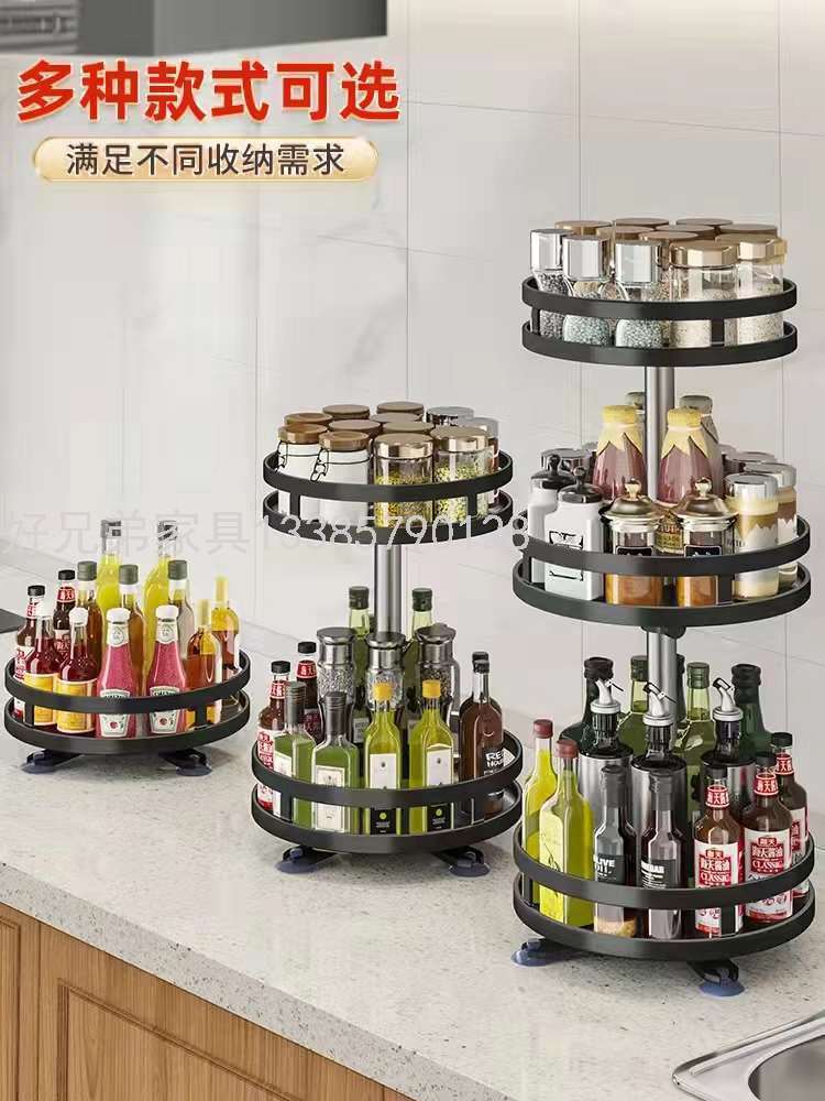 可旋转厨房调料置物架台面转角放调味品油盐酱醋瓶多功能圆形收纳