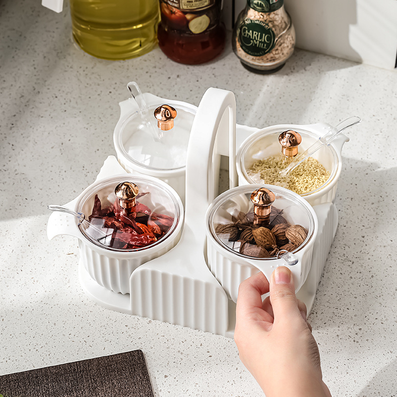 • 家用厨房调料盒2022新款手提调料瓶罐透明盖子组合调味盒厂家直供