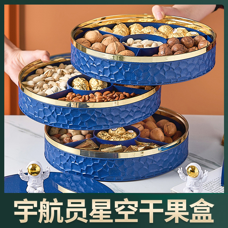 • 宇航员星空干果盘新款塑料室内客厅零食小吃碟北欧简约分隔水果盘