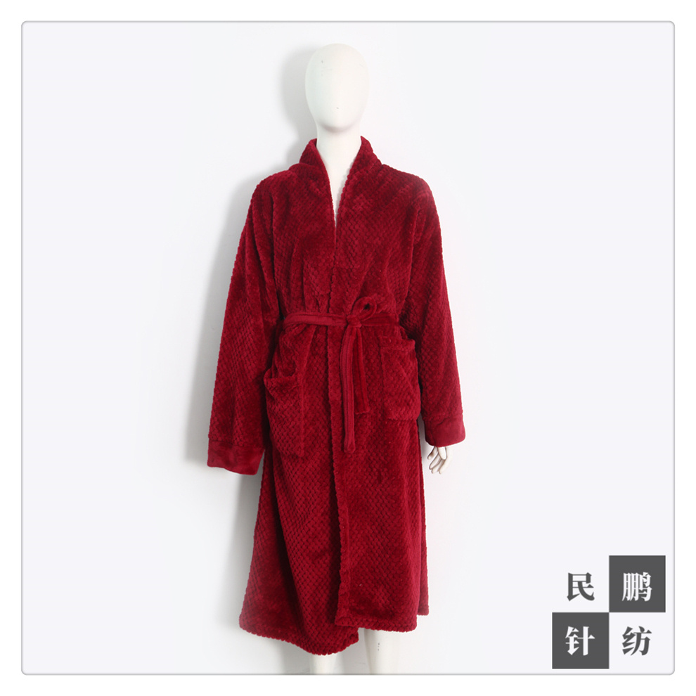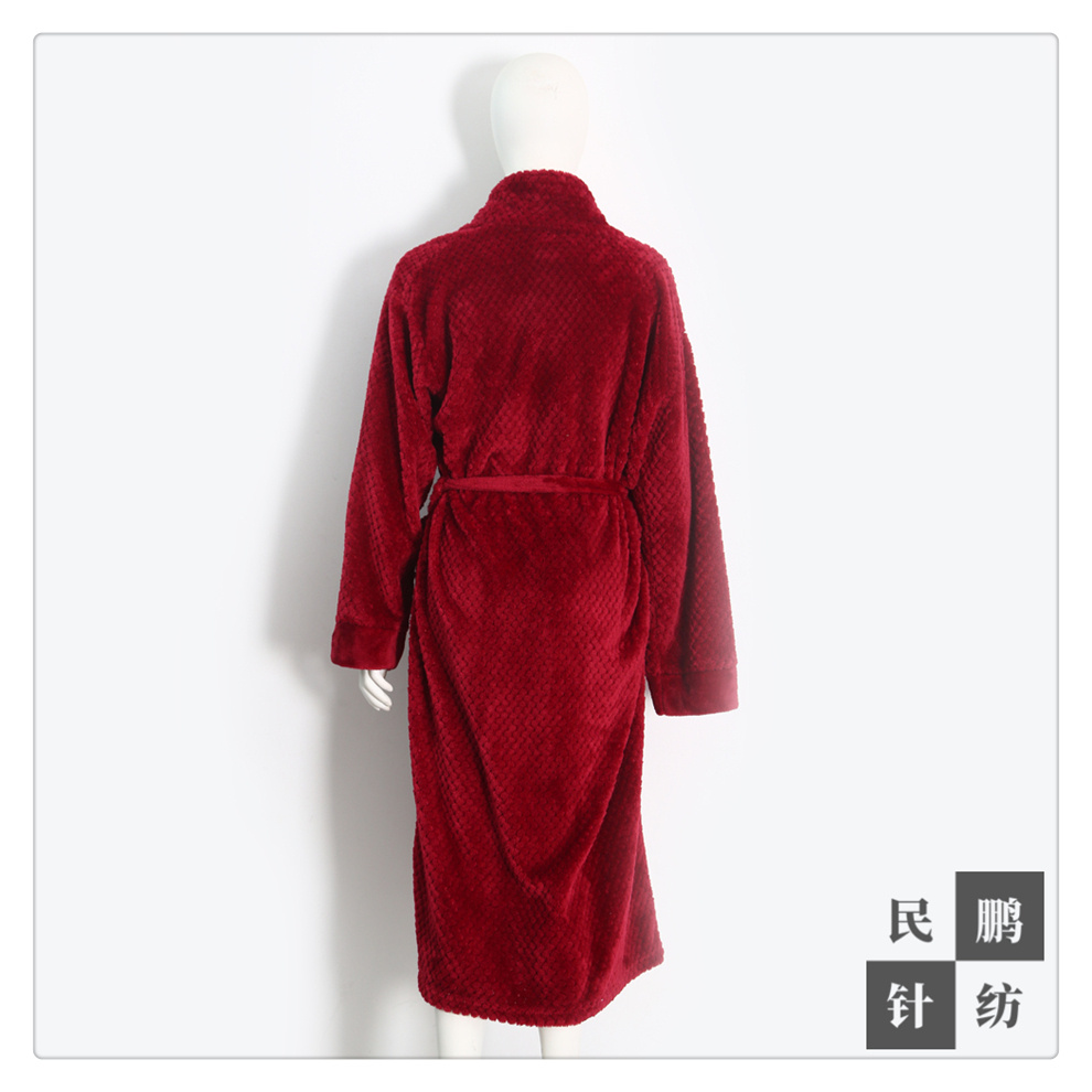 产品名称:玫红色冬日加绒睡袍女 长款秋冬浴袍加厚浴衣 冬季家居服厂家直销