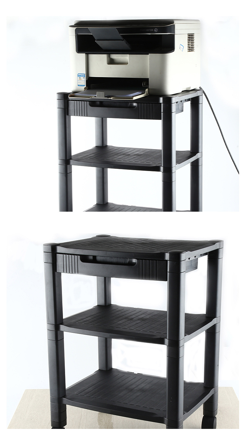 轮打印机推车,家庭办公室小型打印机支架,带存储和电缆管理