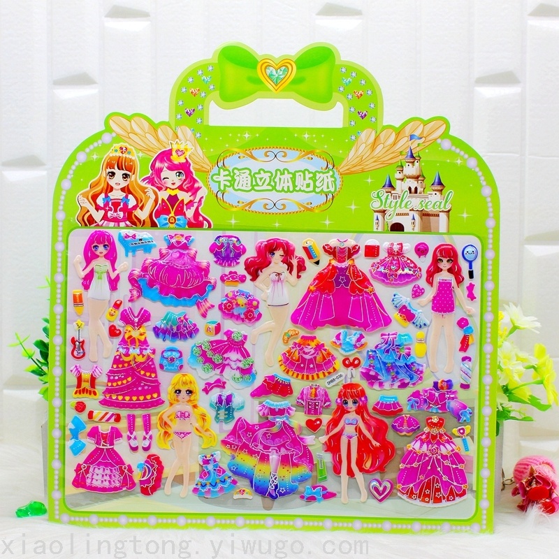 产品功效;女孩换装贴,丰富儿童想象力,增加儿童兴趣,可以随意搭配衣服,今天你穿了什么衣服,快来看看吧!