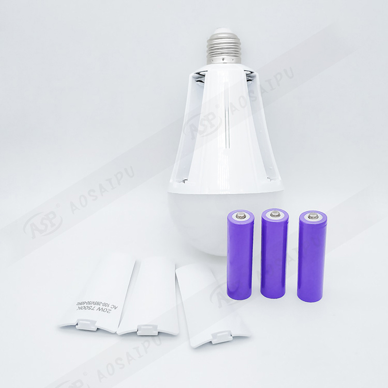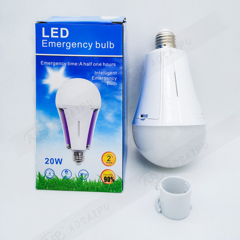 厂家直销E27三节锂电池20W 花草图案蓝色彩盒 灯泡停电应急灯家用 投诉