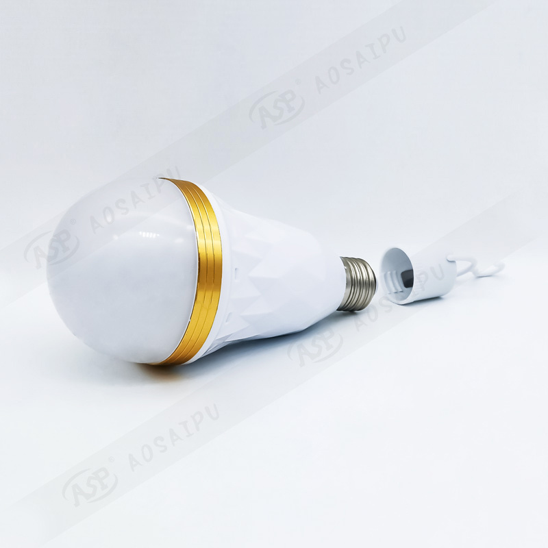 厂家直销E27内置锂电池网格纹外壳金属环 停电应急灯家用充电灯泡