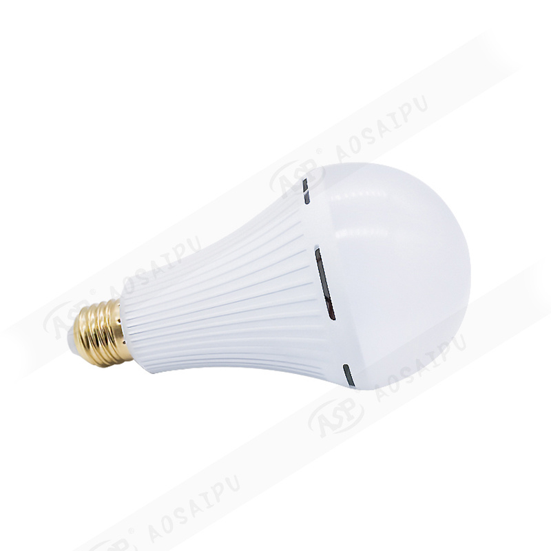 E27内置锂电池有条纹灯泡金属色灯尾15W灯带散热灯泡停电应急灯泡