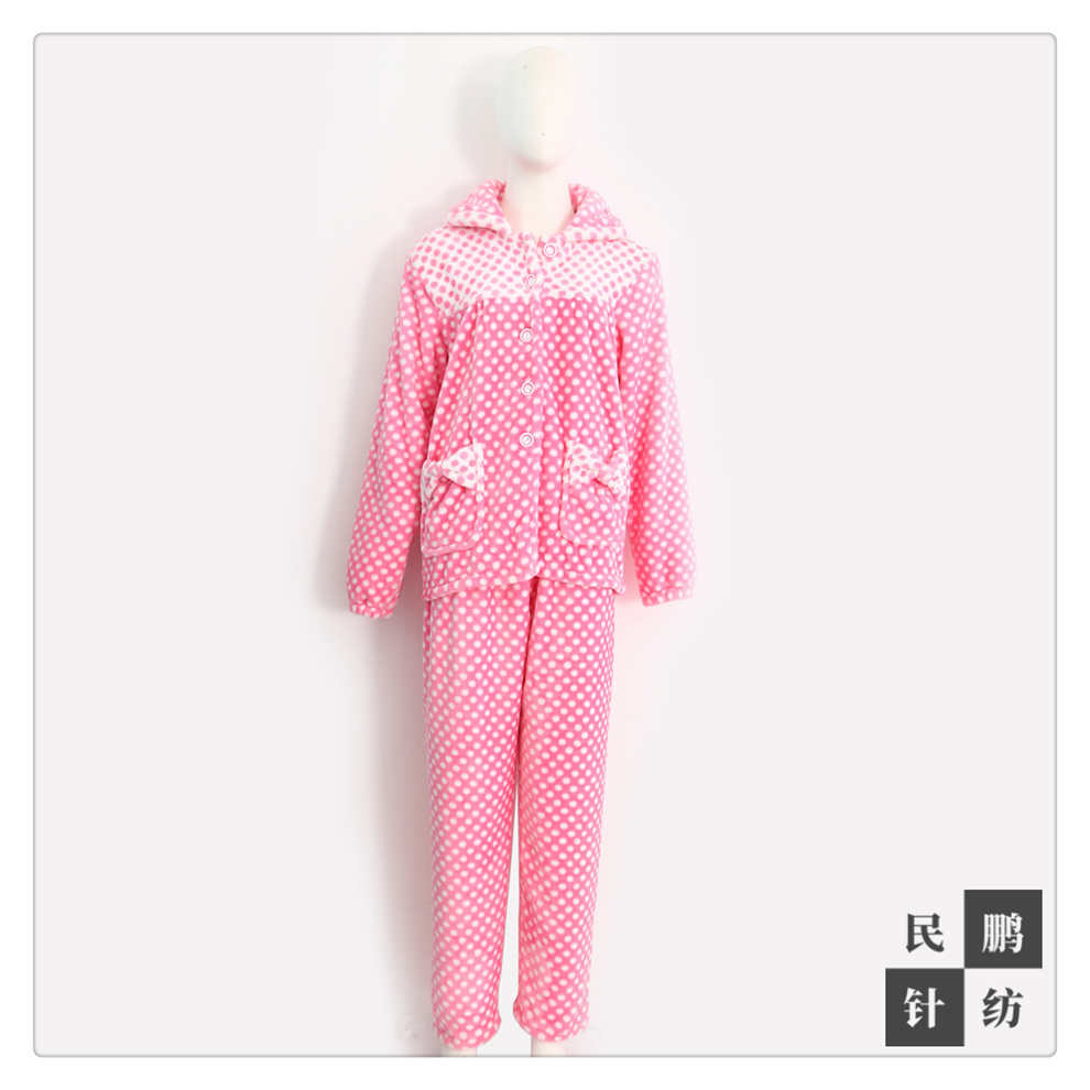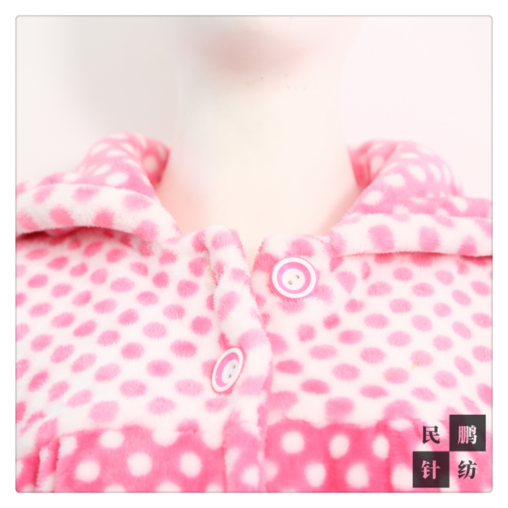 产品名称:双色圆点图案秋冬保暖加厚分体睡衣睡裤套装 懒人法兰绒居家睡衣