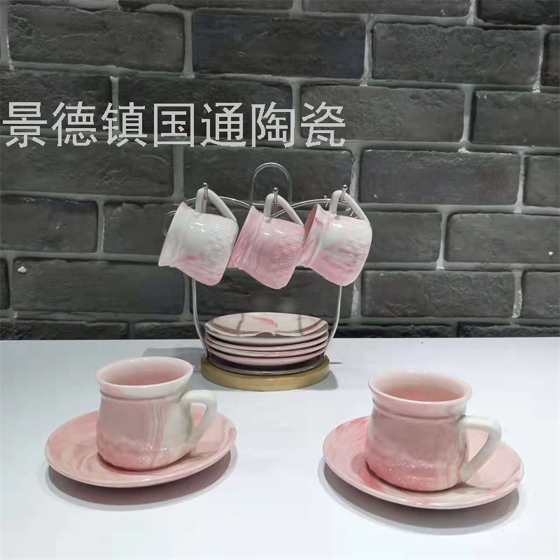 景德镇新款带架子咖啡杯碟陶瓷水杯欧式咖啡杯出口杯碟色釉杯套装 English | 投诉