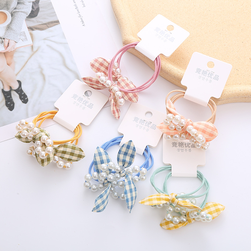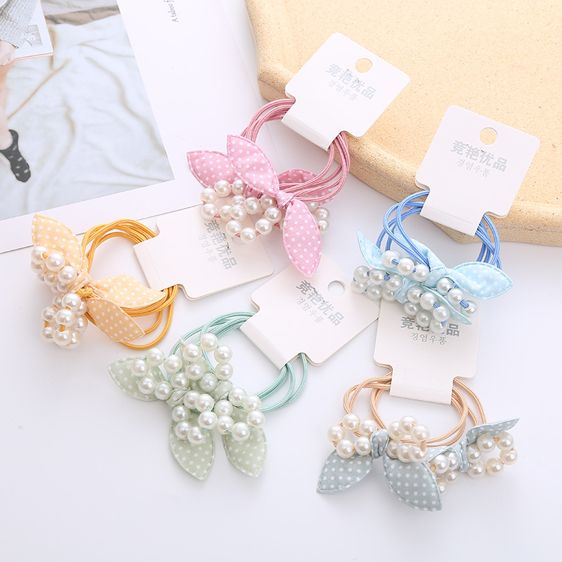 日韩新款订卡12珠蝴蝶结皮筋高弹力基础头绳超仙女生兔耳朵发圈