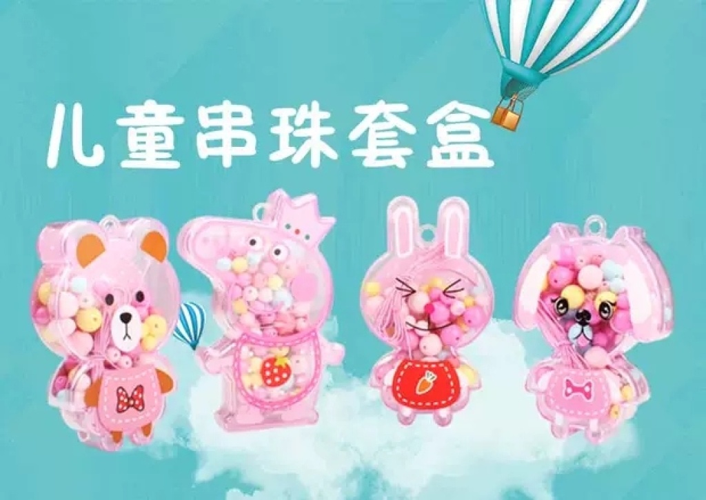 儿童佩琪串珠卡通手工diy玩具益智制作材料包宝宝穿珠子项链手链