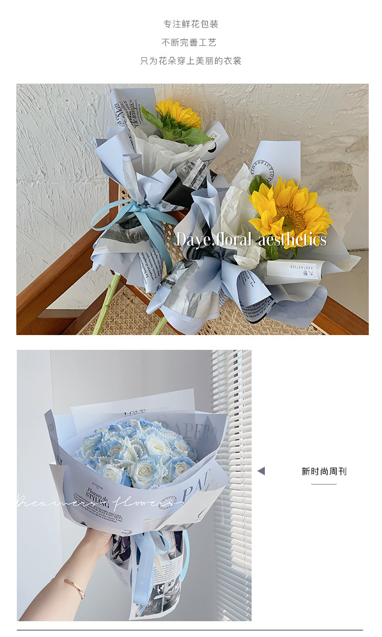 花衣裳 新款英文报欧雅鲜花花束包装纸防水时尚花店花艺资材礼品 投诉