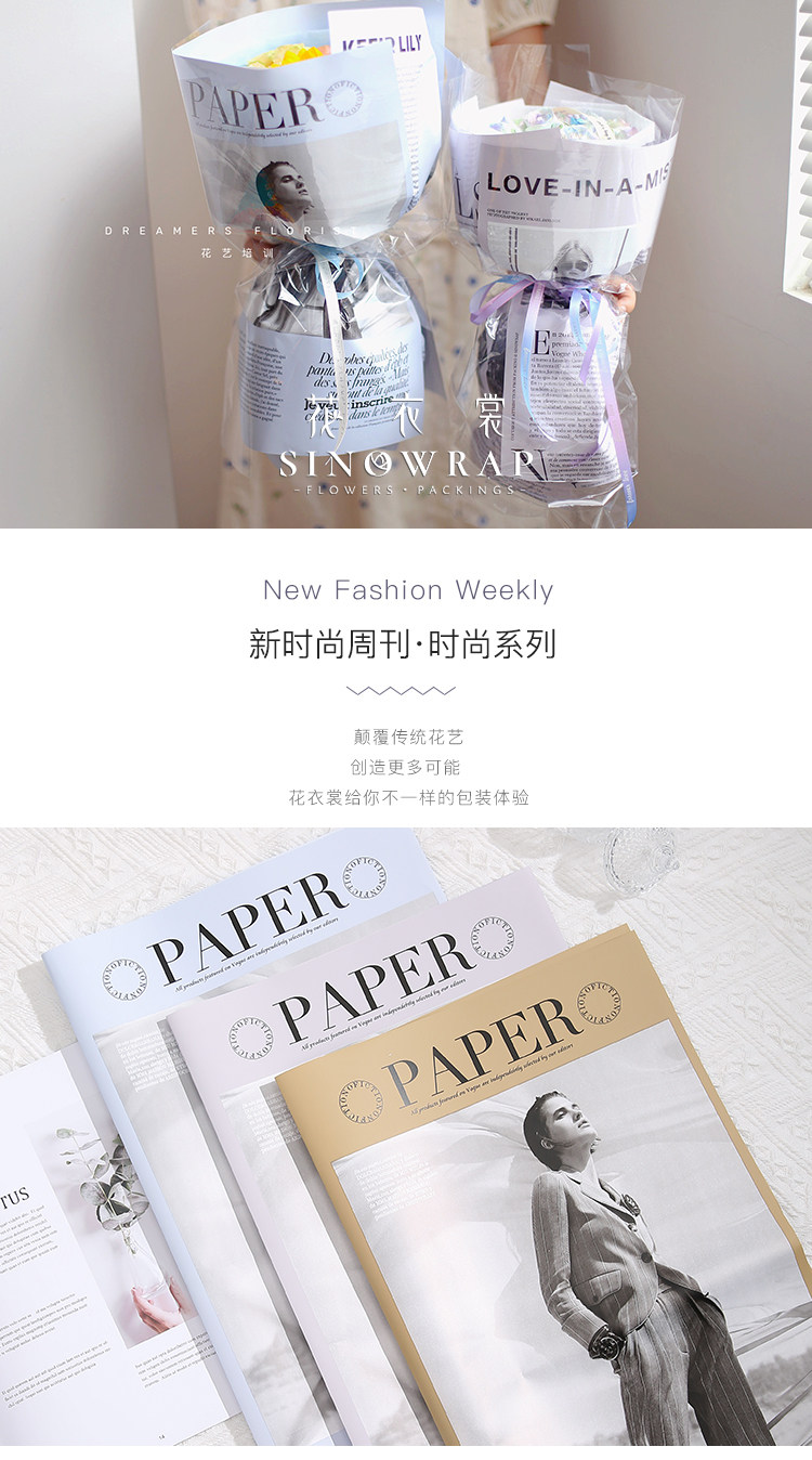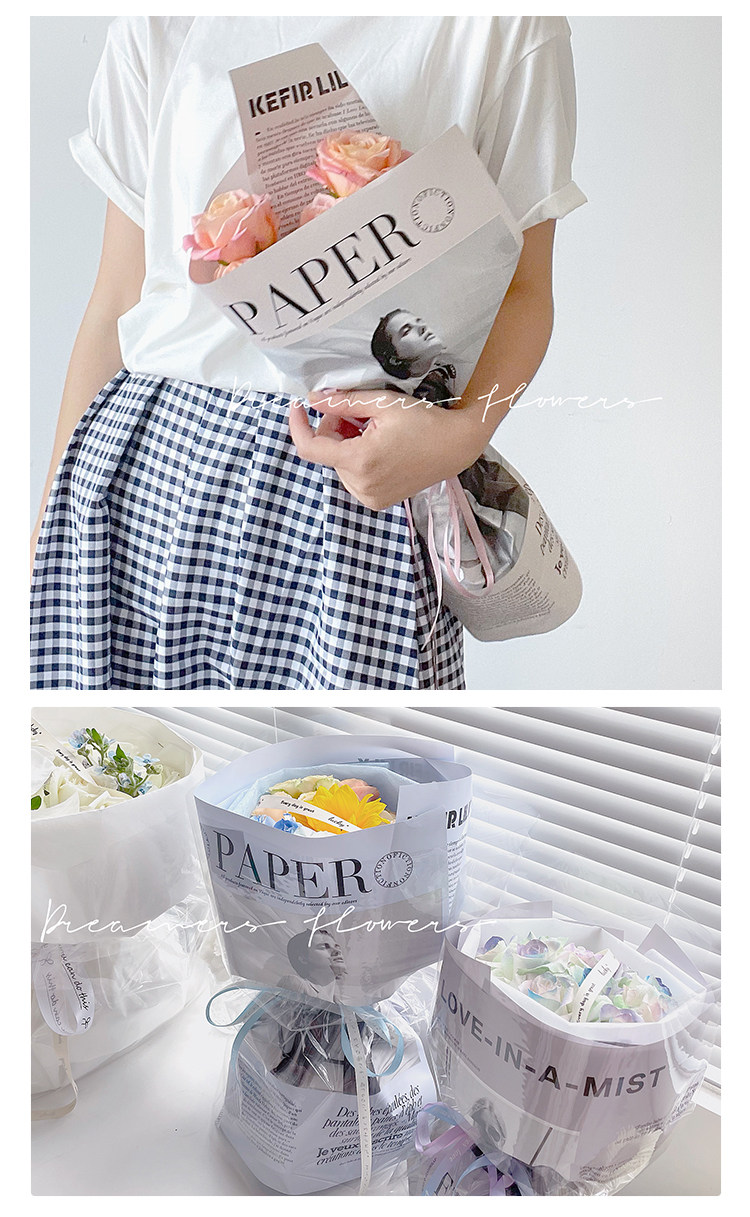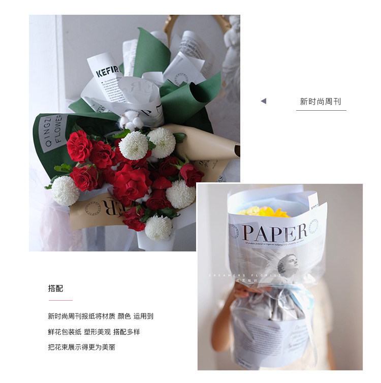 花衣裳 新款英文报欧雅鲜花花束包装纸防水时尚花店花艺资材礼品