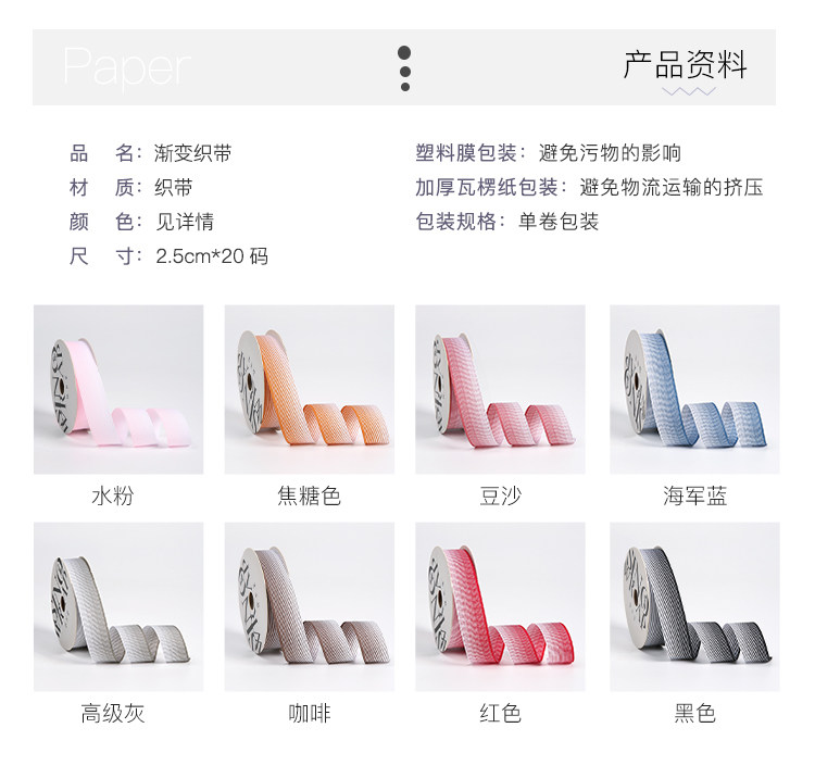花衣裳 新款2.5cm高级渐变花束织带花店花艺礼品包装丝带蛋糕缎带 投诉