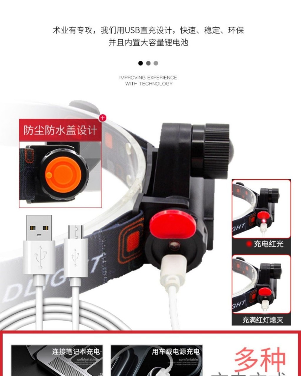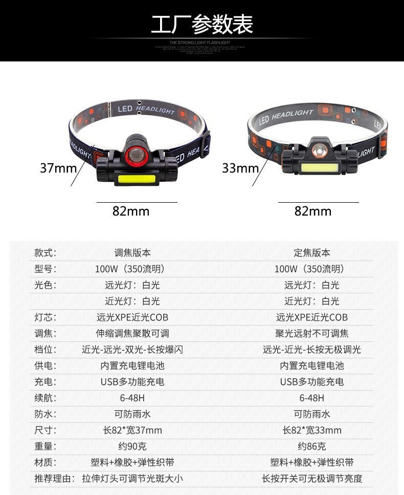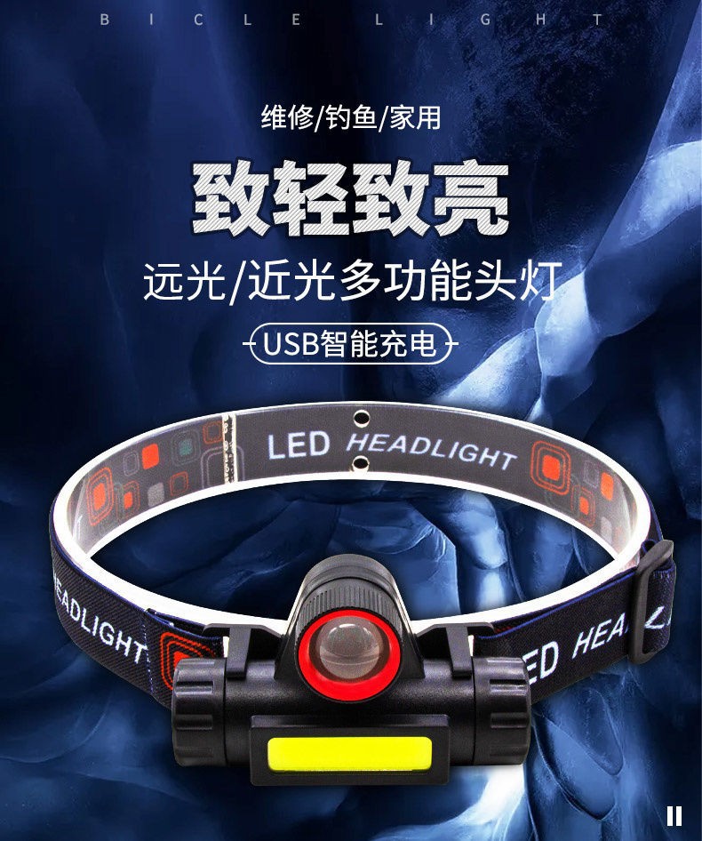 跨境LED户外强光头灯USB充电伸缩变焦防水COB头戴式工作灯钓鱼灯 投诉
