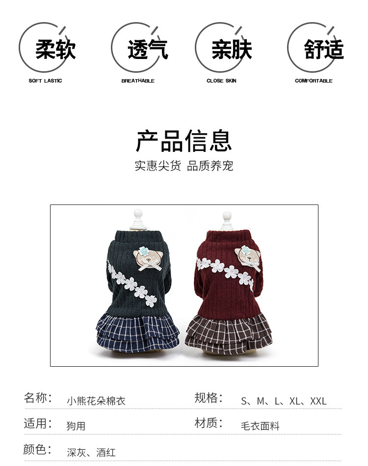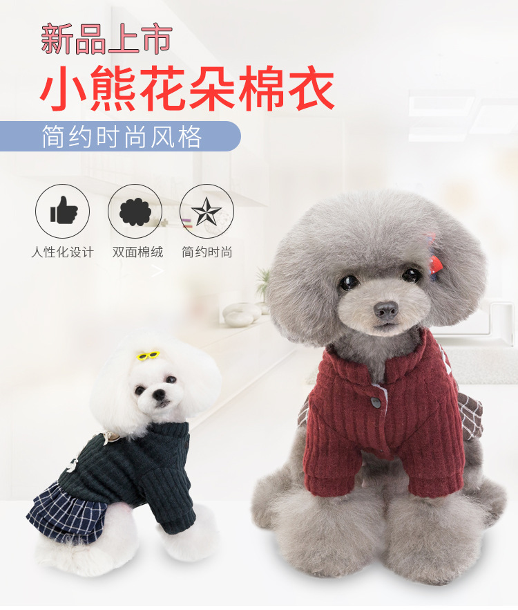 跨境狗狗宠物衣服 两腿小熊花朵秋冬狗狗衣服 中小型犬狗衣服 投诉